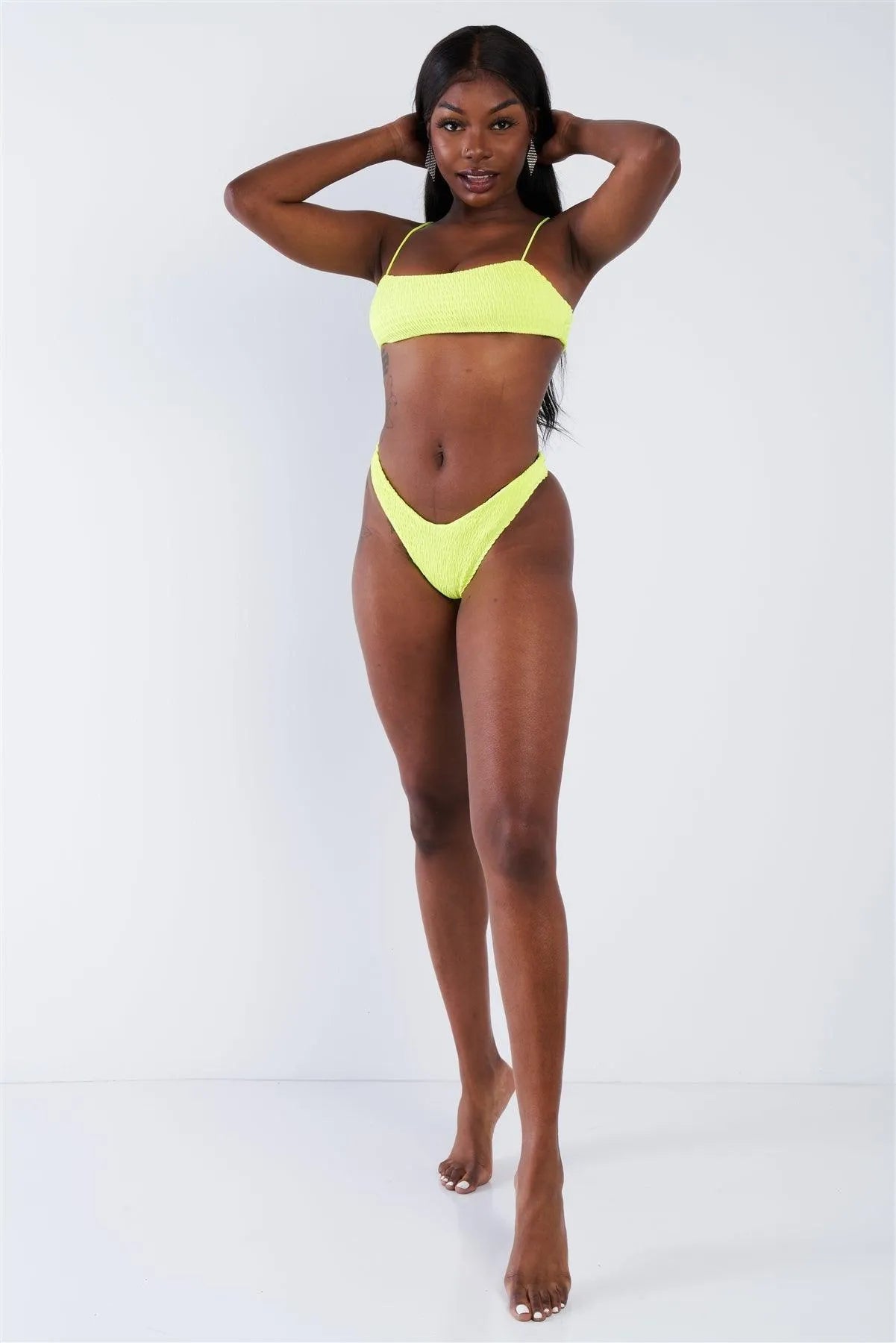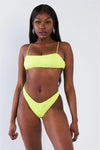 Neon Yellow Square Neck Cami & V-Cut High Thigh Bikini Set /3-2-1