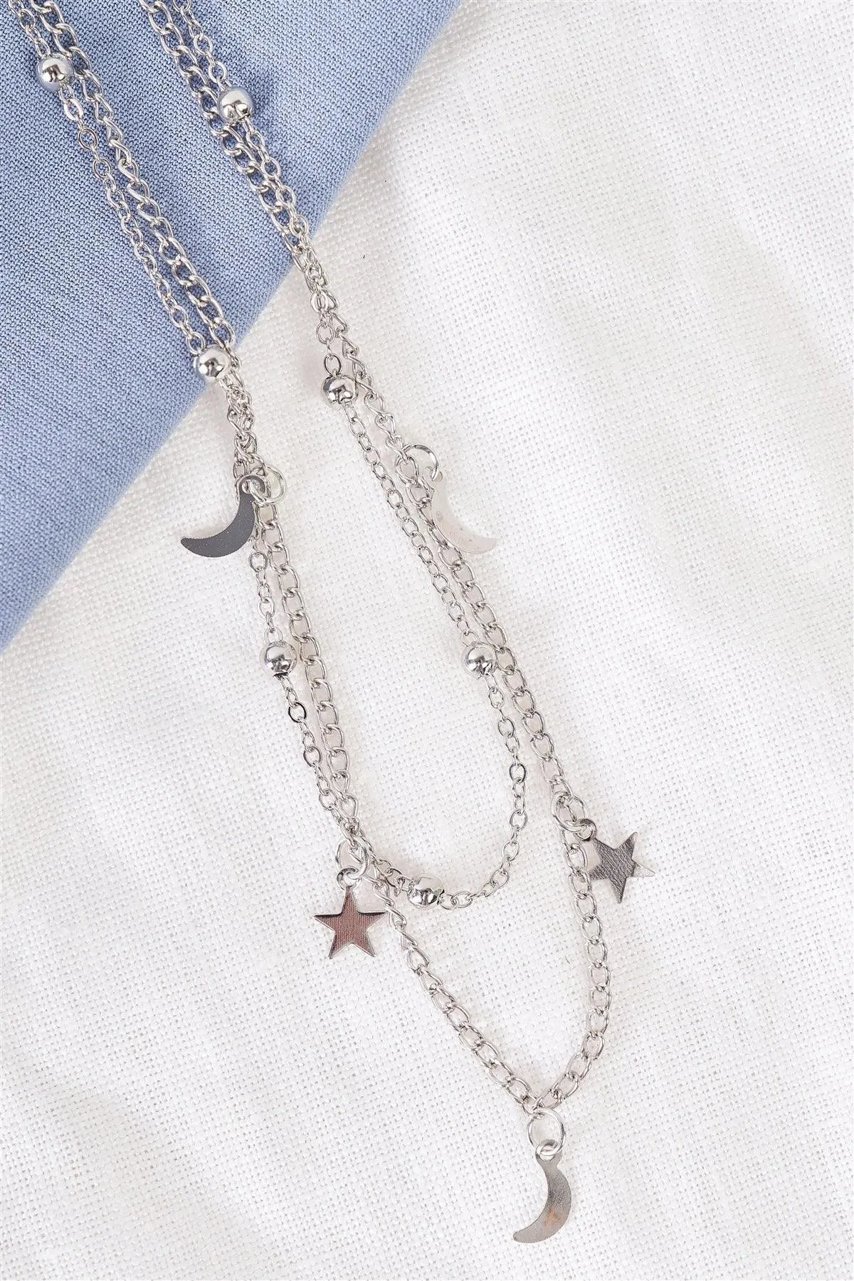 Night Sky Star Moon Silver Beaded Double Chocker Necklace