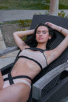 Nude & Black High Neck Cut-Out Top & High LegCriss-Cross DetailBottom Sporty Bikini Set /3-2