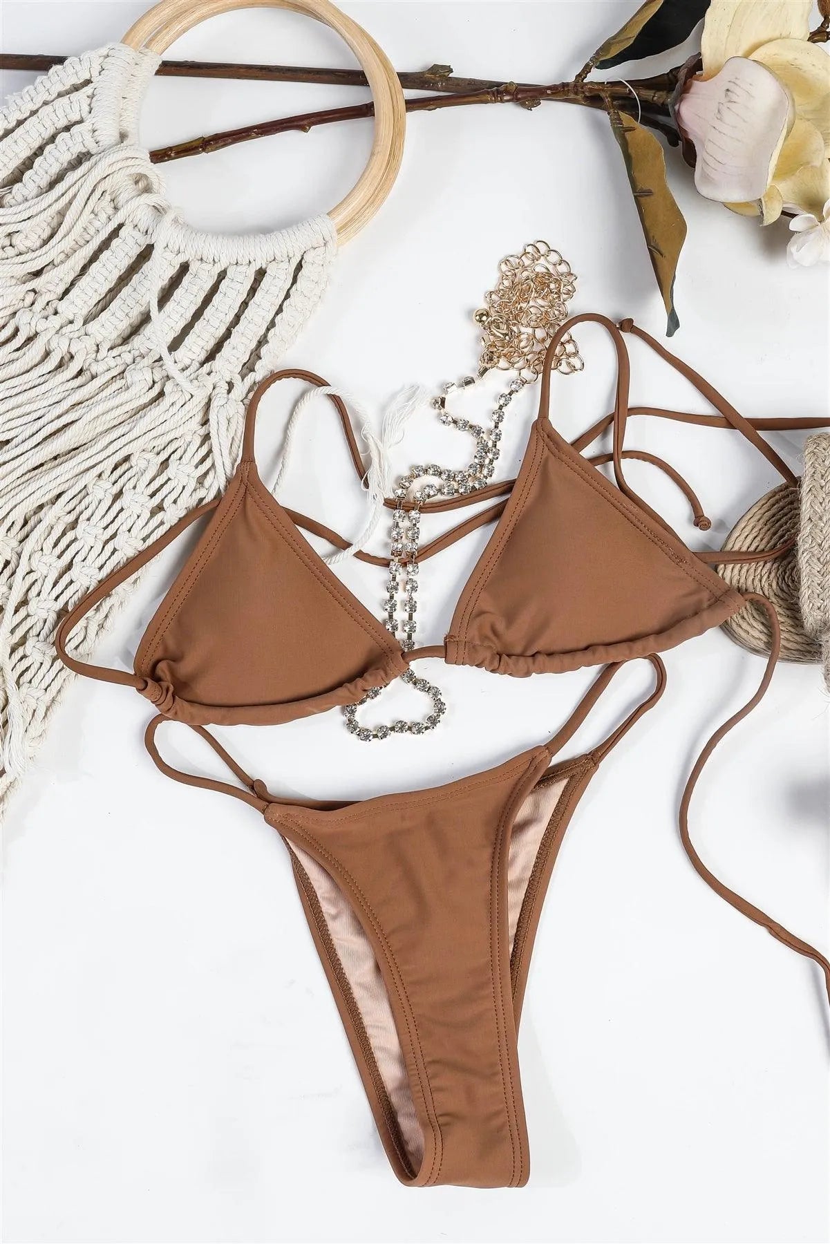 Nude Saint Martin Triangle Belly Chain String Side Bikini Swimwear 2 Piece Set