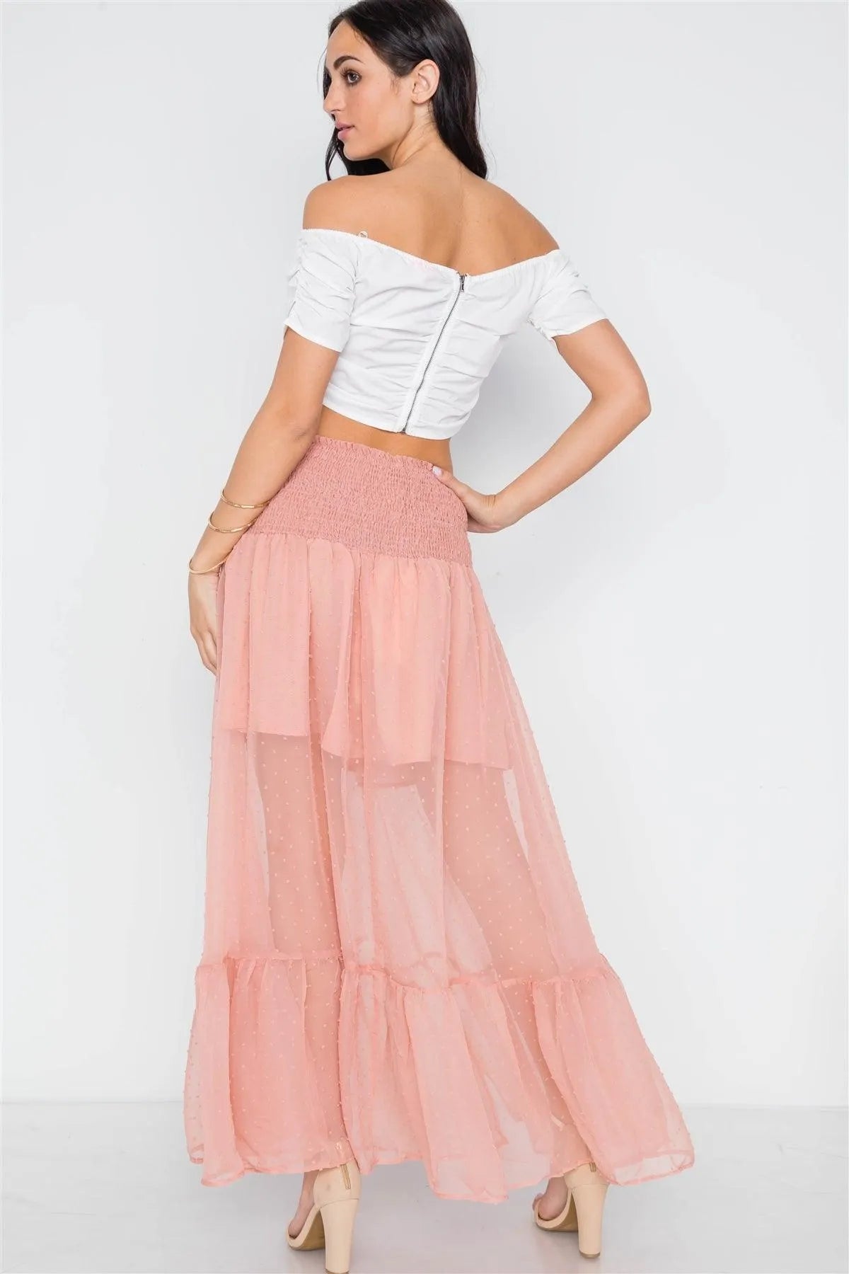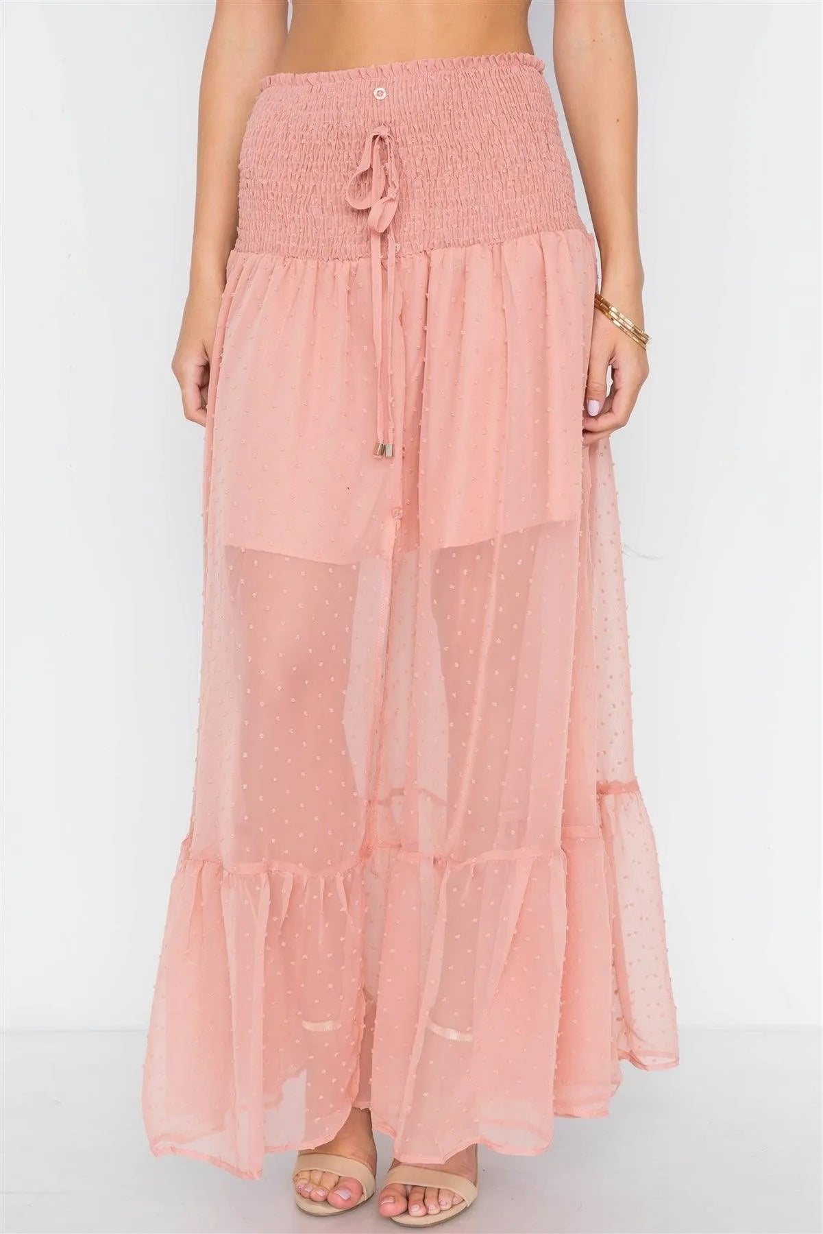 Nude Smocked High-Waist Sheer Maxi Skirt /1-3-2-1