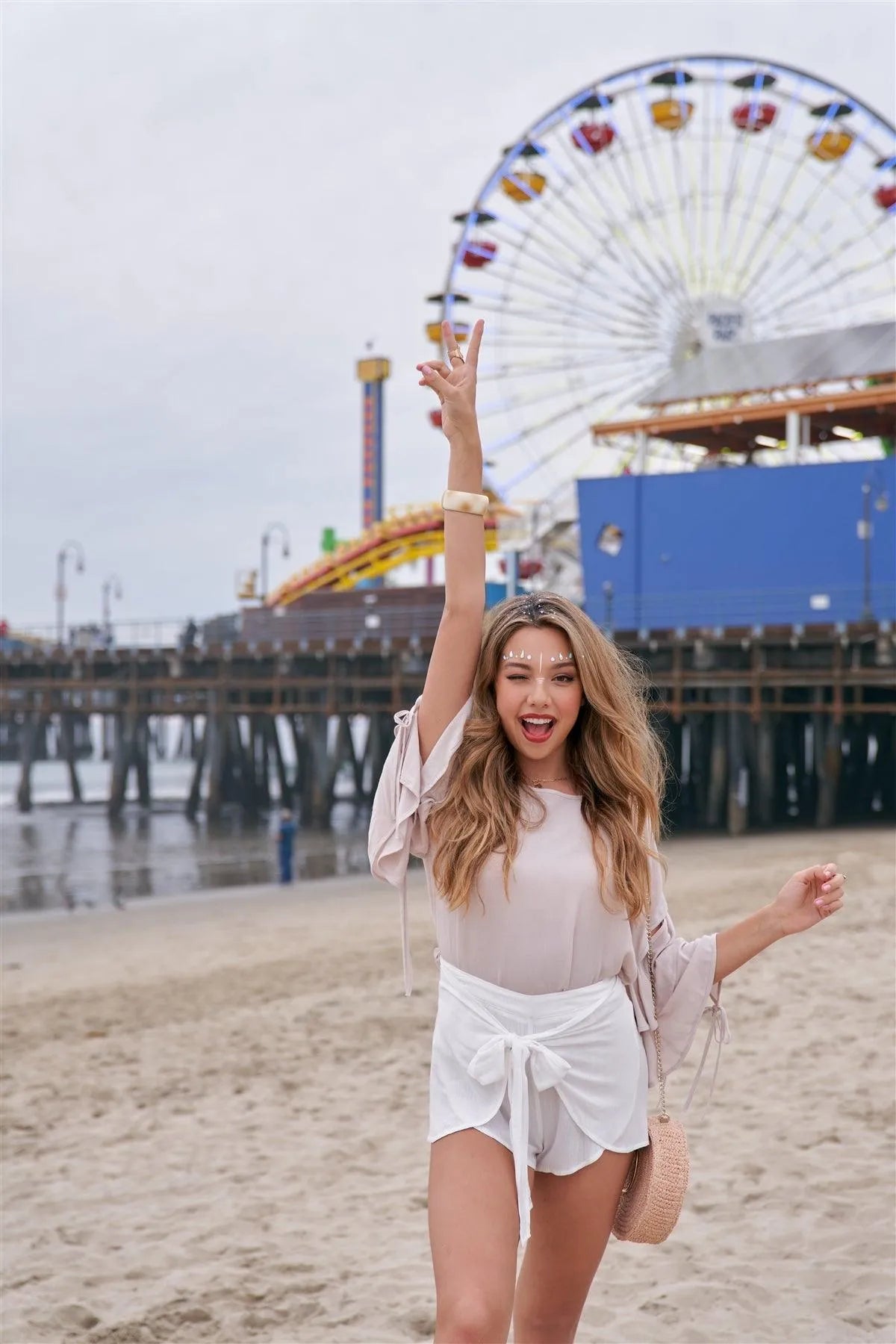 Lindsay is 5'10" (Bust: 33B, Waist: 26", Hips: 35"). Model is wearing size S.