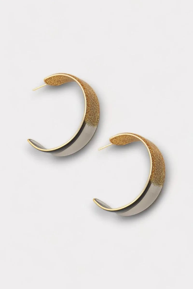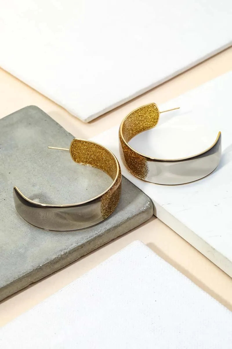🖤 Add some sparkle to your look with these Glitter Gold Flat Acrylic Hoop Earrings. Made of lightweight acrylic, these earrings feature a flat design for a modern twist. Perfect for adding a touch of glitz to any outfit! Shine on, babe!