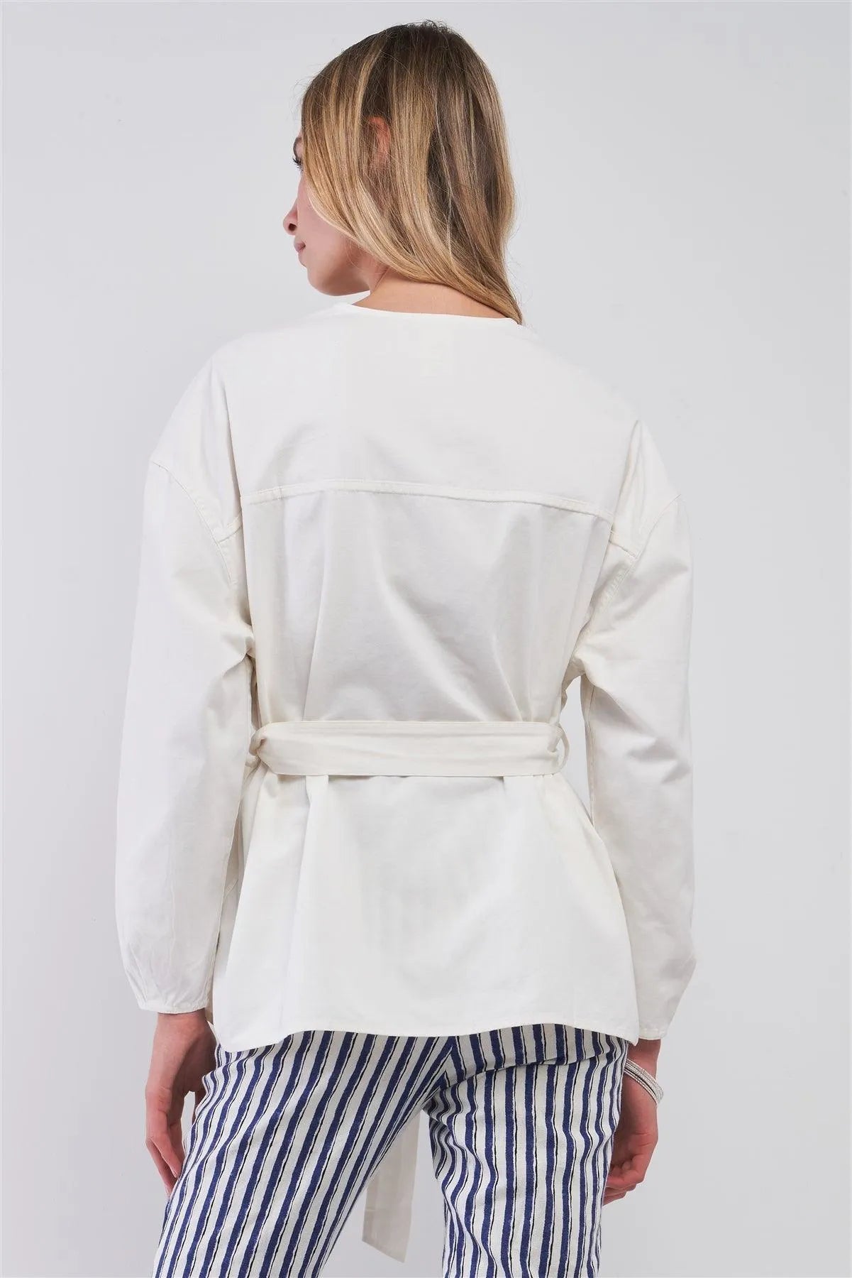 Off-White Balloon Sleeve Button-Down Front Self-Tie Belted Oversized Summer Jacket /1-2-2-1