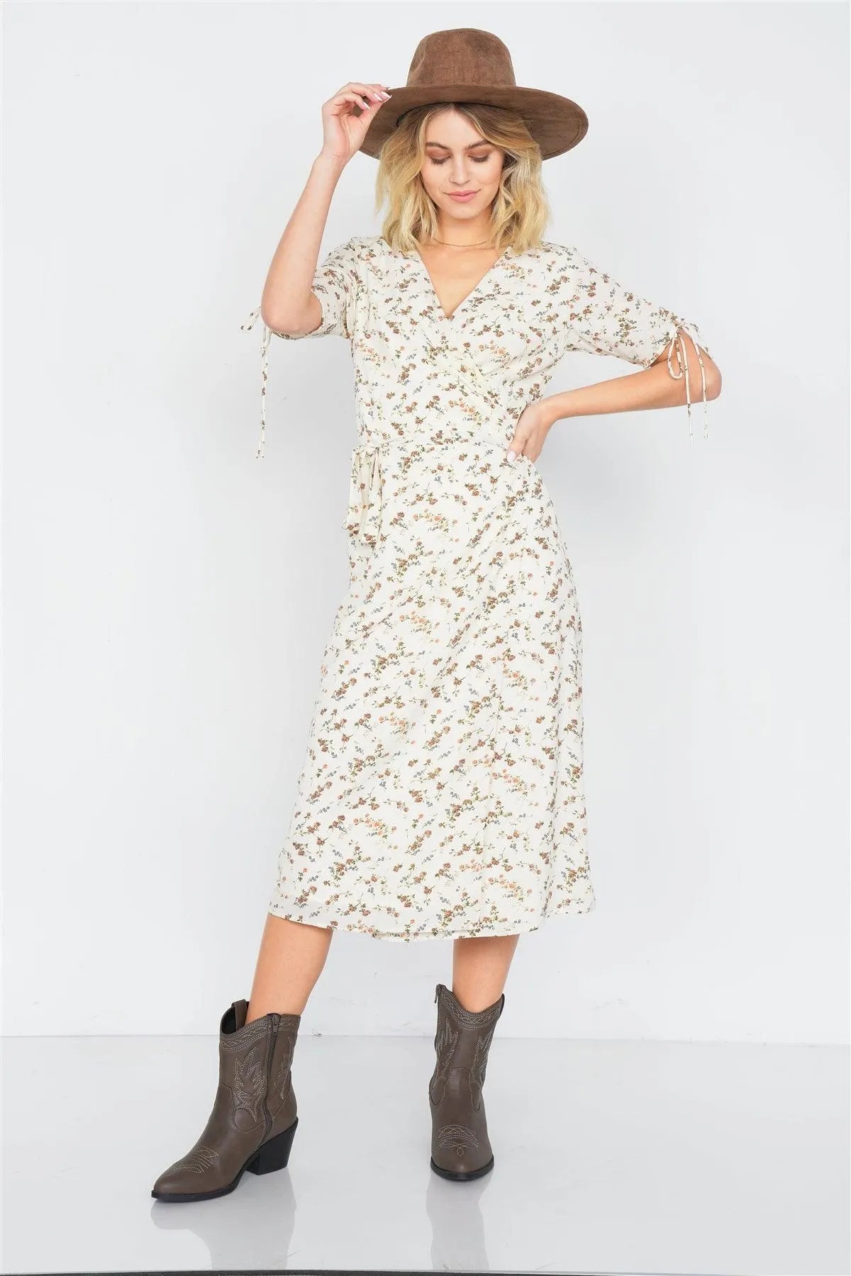 Off-White Boho Floral Print Midi Dress /2-2-1
