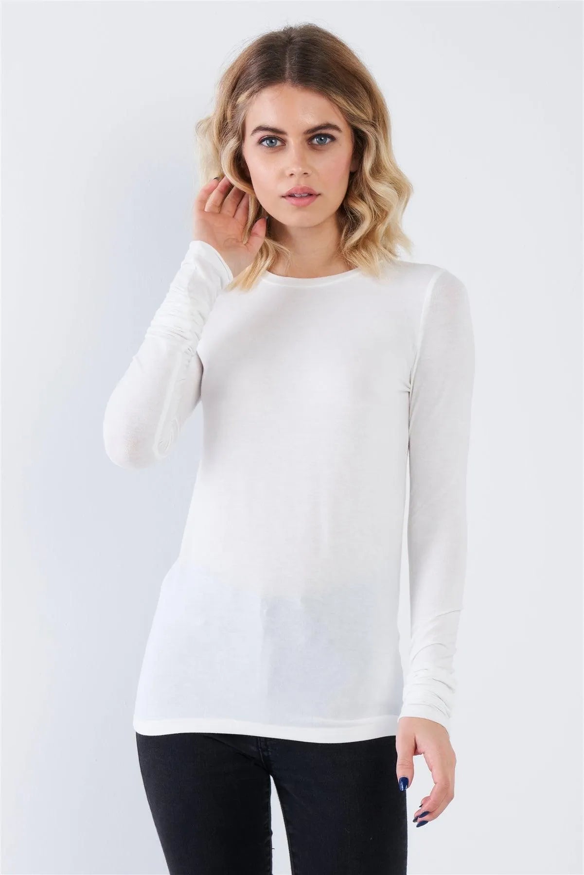Off-White Casual Basic Long Sleeve Stretchy Bodycon Top /3-2-1