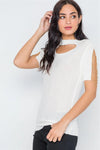 Top features: short sleeves with chain detailing, front cut out, solid, ribbed hem Model is 5'9 wearing a size Small ( Waist: 24", Bust: 32A, Hips: 34")Size Small Item Measurements: Length: 25" Bust: 32", Sleeves: 9"True to size