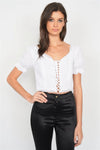 Off-White Eyelet V-Neck Lace Up Puff Sleeve Boho Crop Top /3-2-1