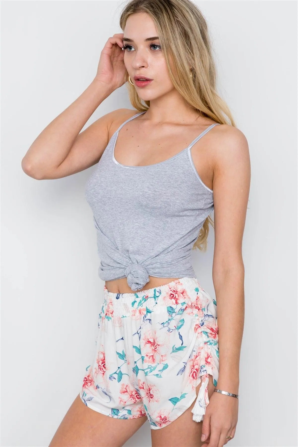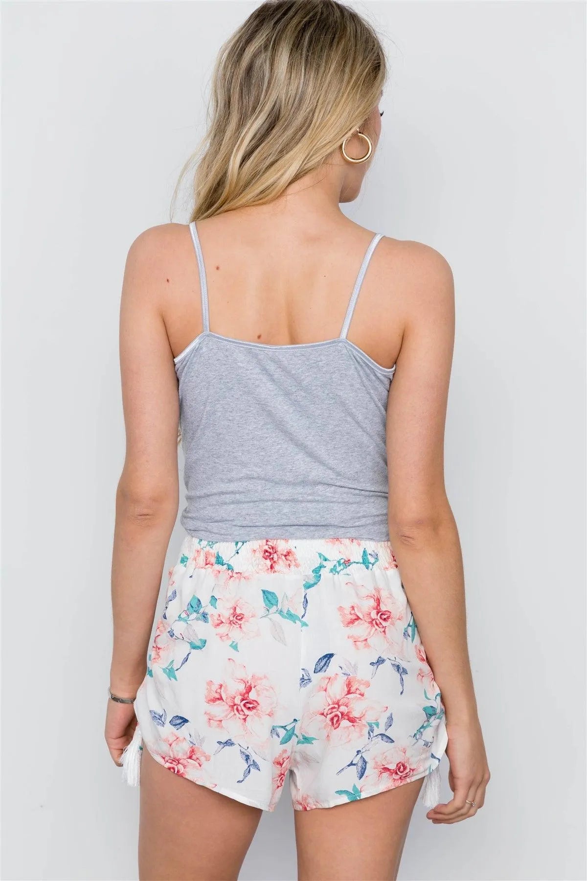 Off White Floral Print Mid Rise Tassel Short / 1-2-2
