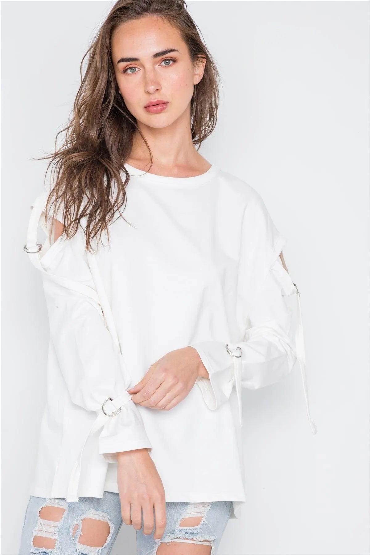 Off White Long Sleeve Cut-Out Sweater /1-1-1