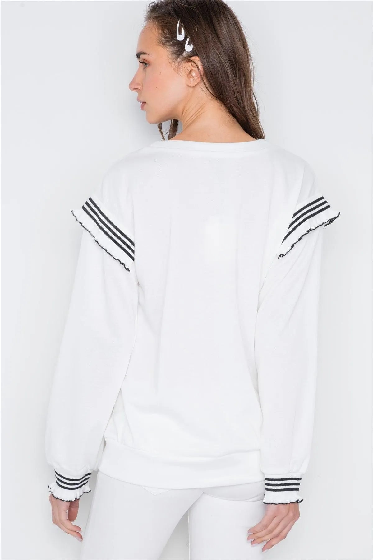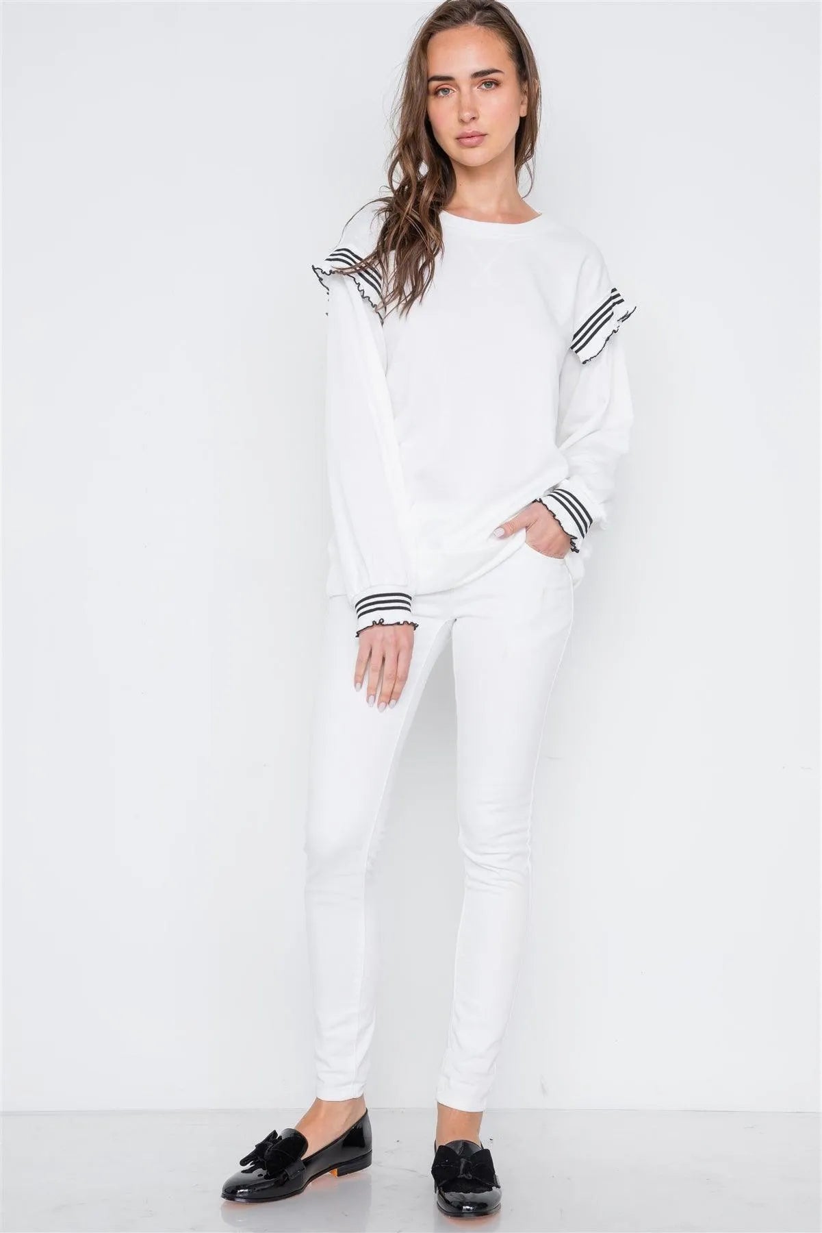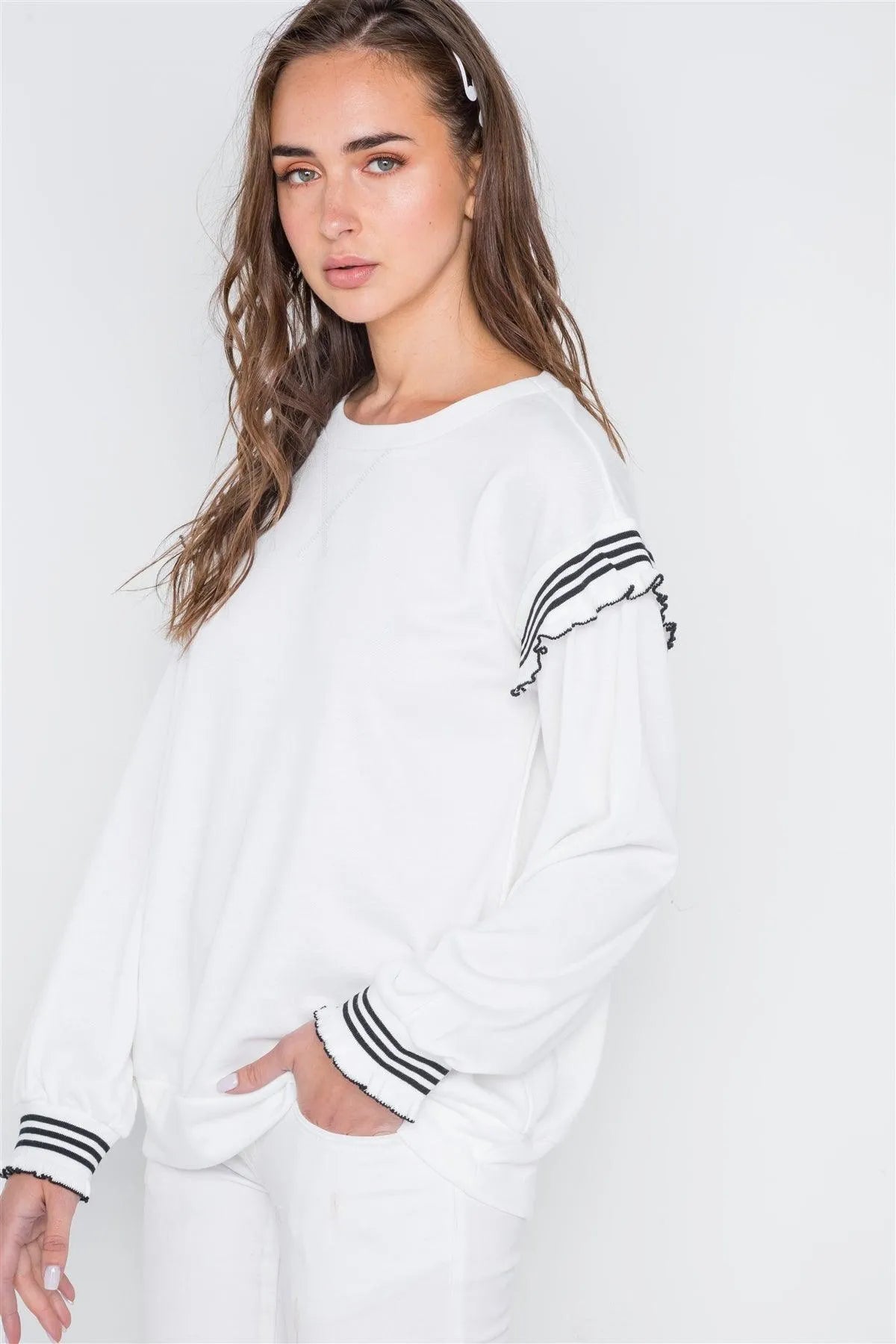 Off White Long Sleeve Stripe Trim Sweater /2-2-2