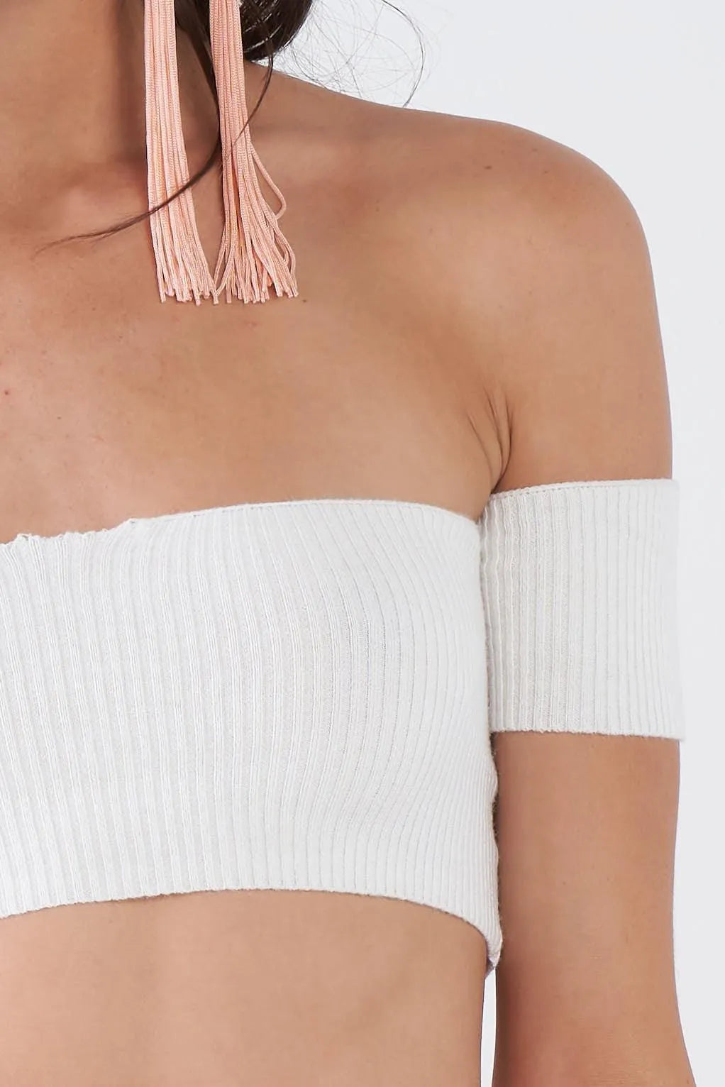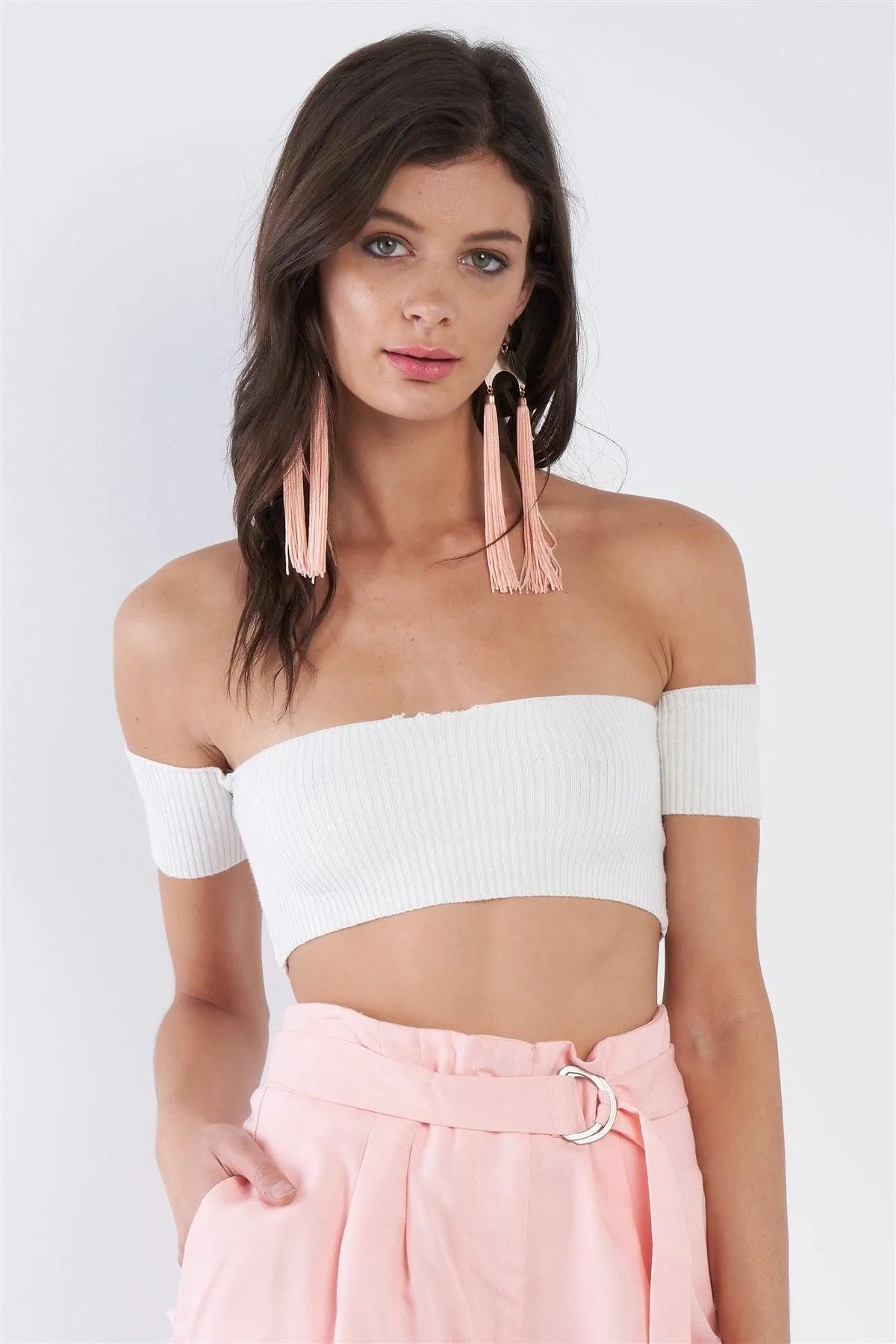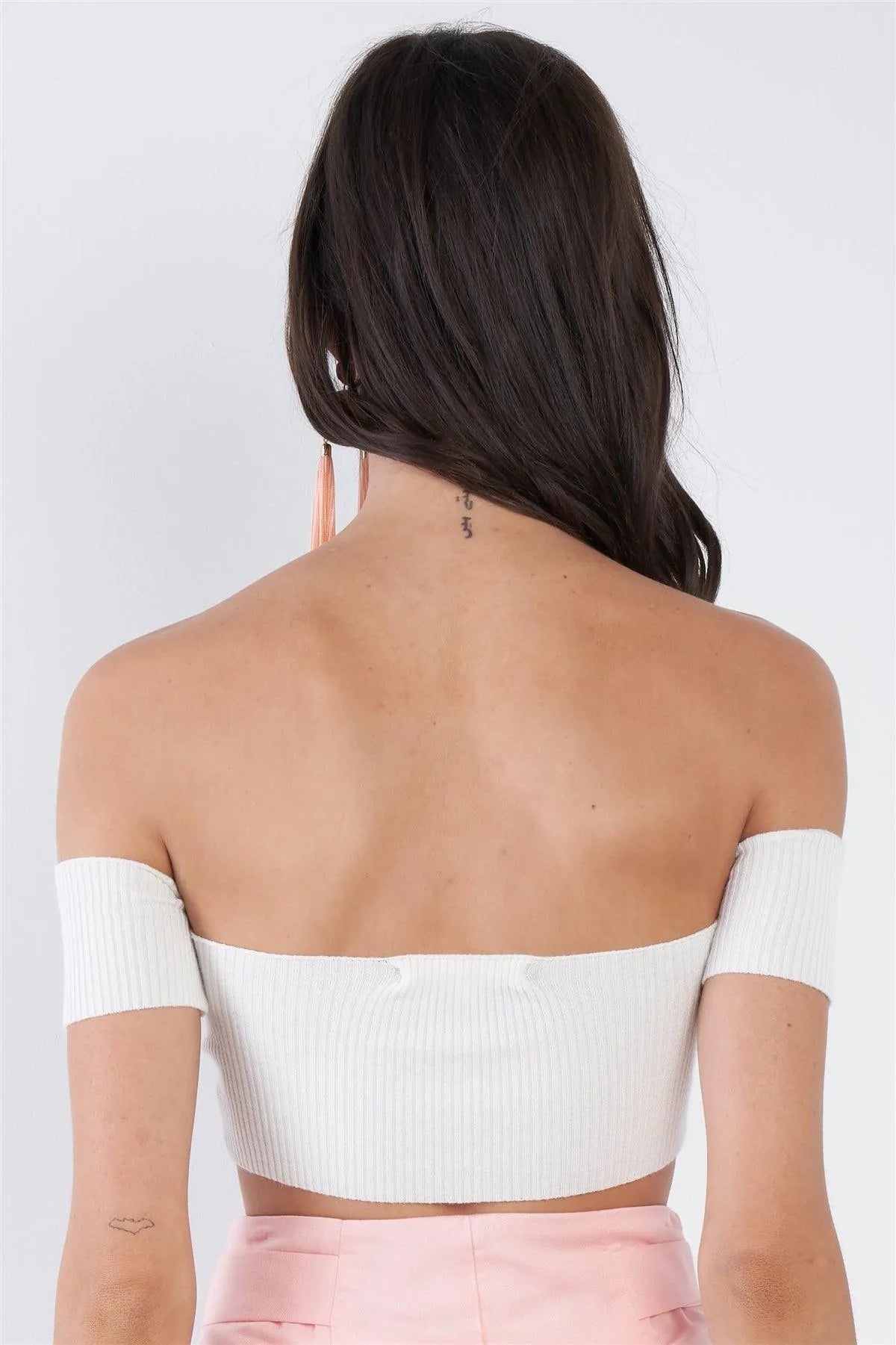 Off-White Off-The-Shoulder Ribbed Chic Crop Top /3-2-1