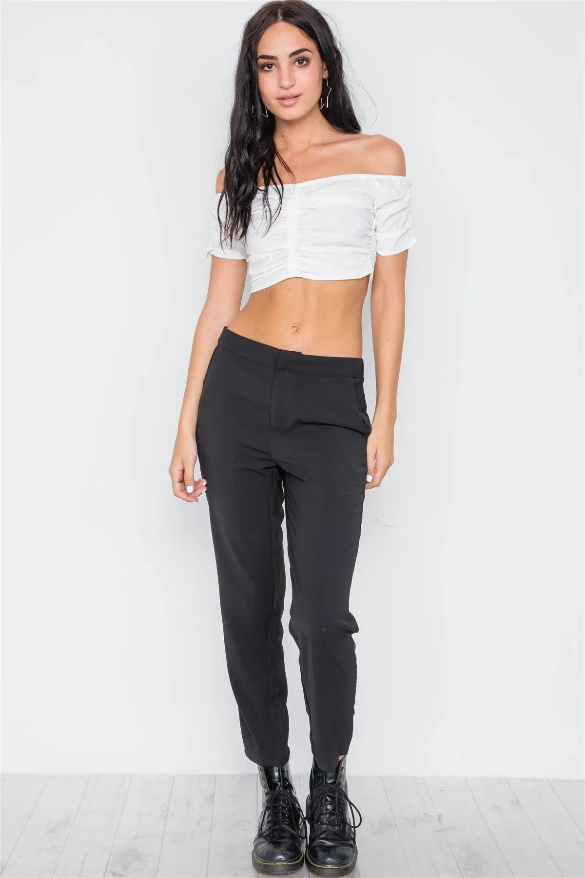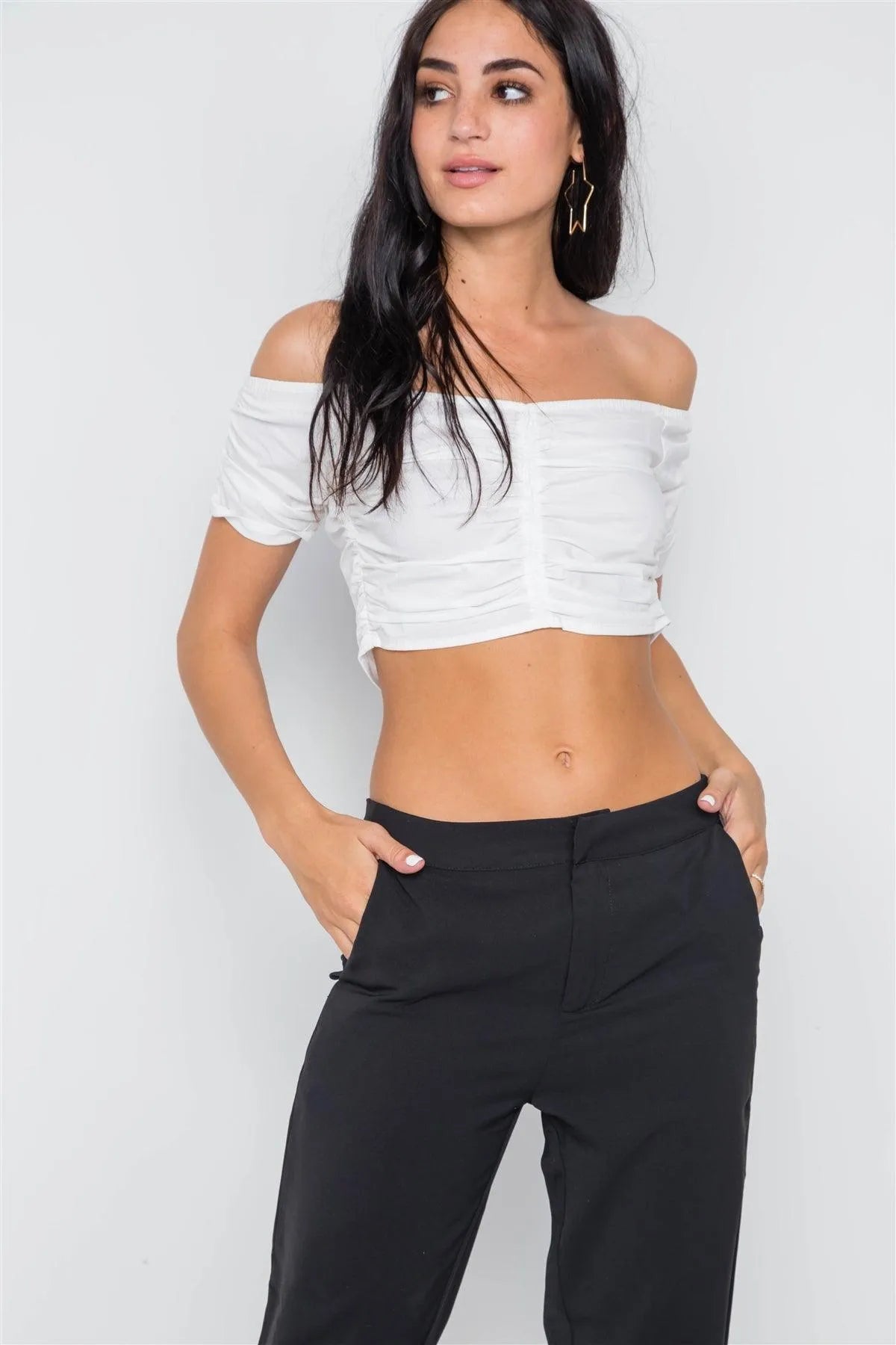 Off White Off The Shoulder Ribbed Crop Top /3-2-1