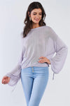 Off White Sheer Knitted Long Draw String Sleeve 70's Style Boho Top /3-2-1