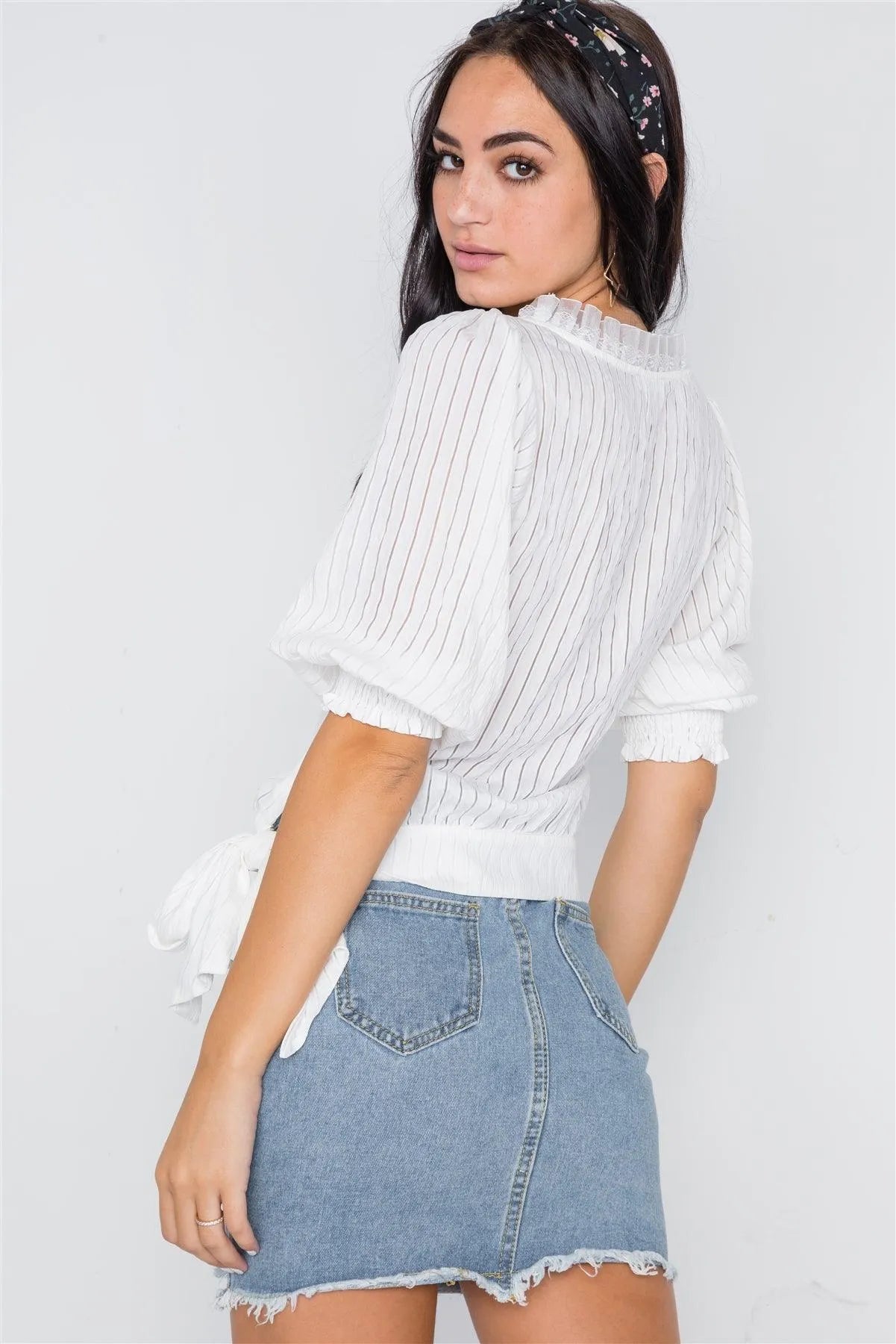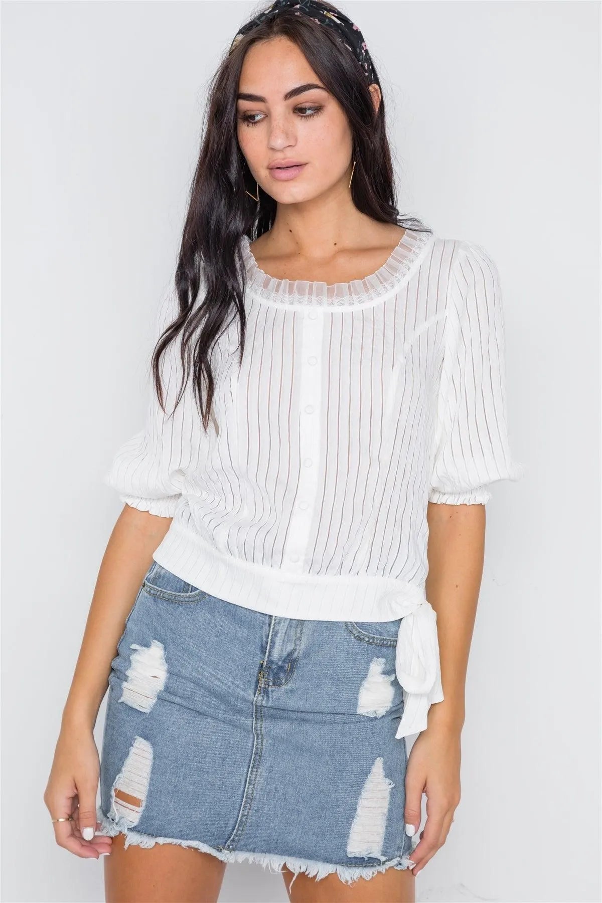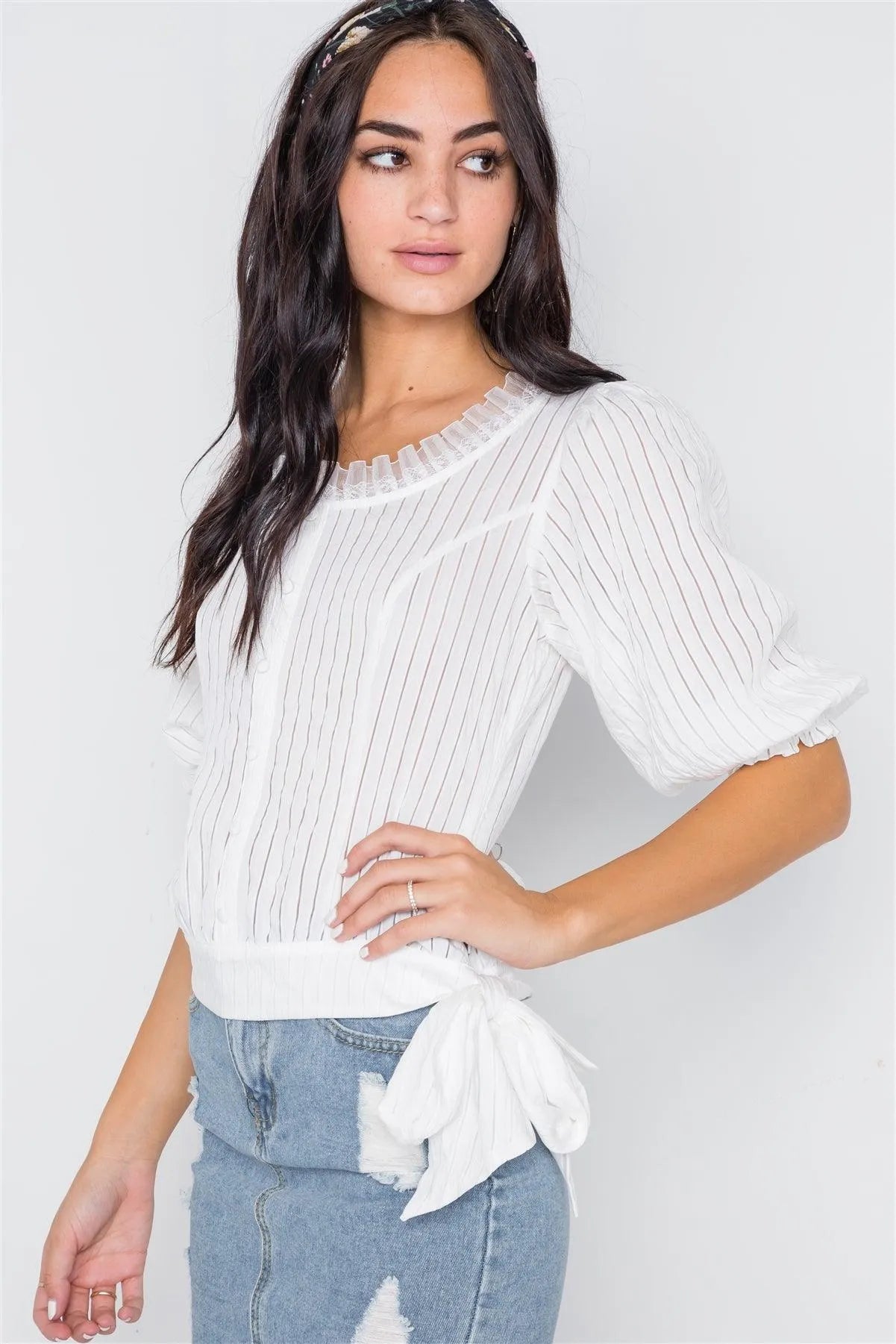 Off White Side-Tie Rushed 3/4 Sleeve Top /2-2-2