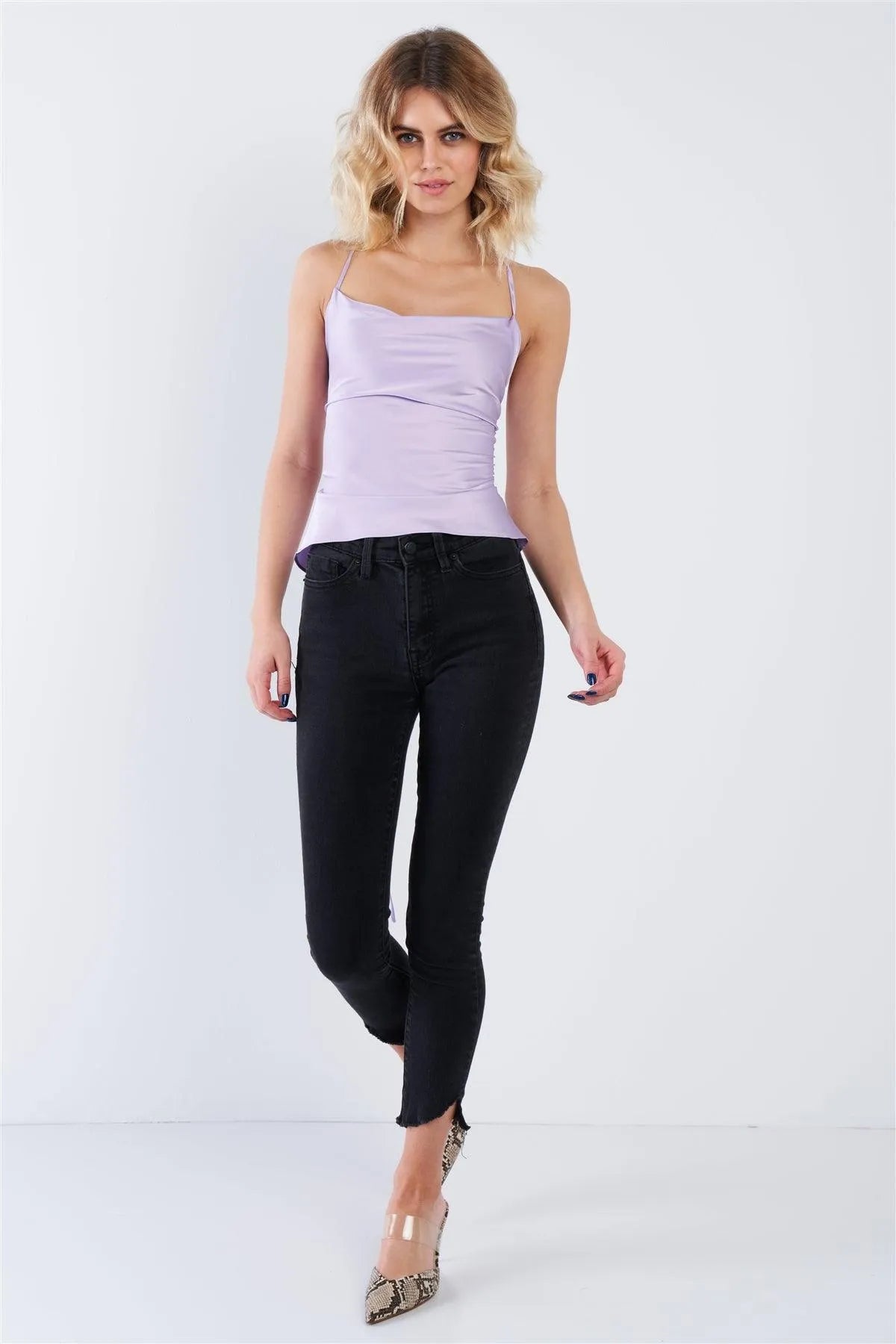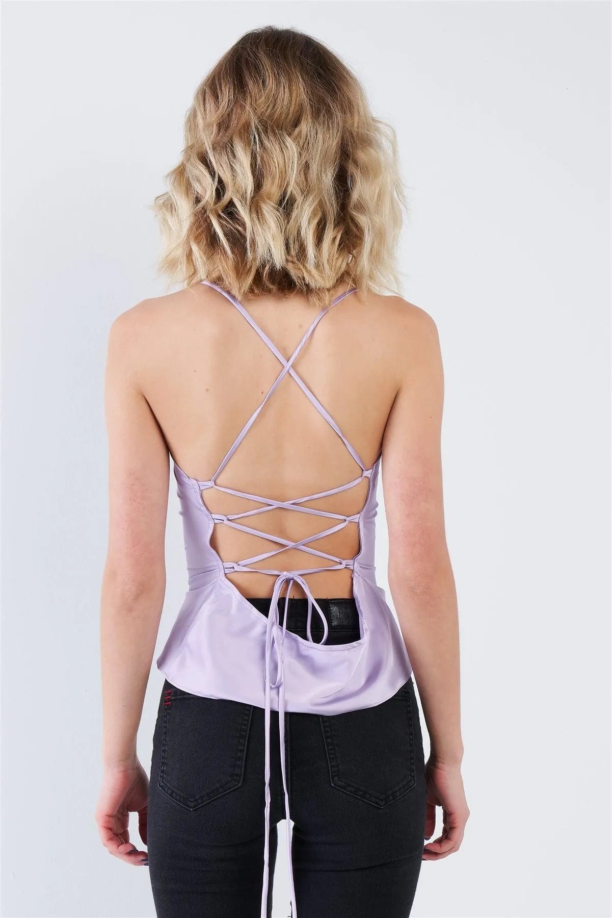 Lavender Silk Criss-Cross Open Back Retro Chic Top