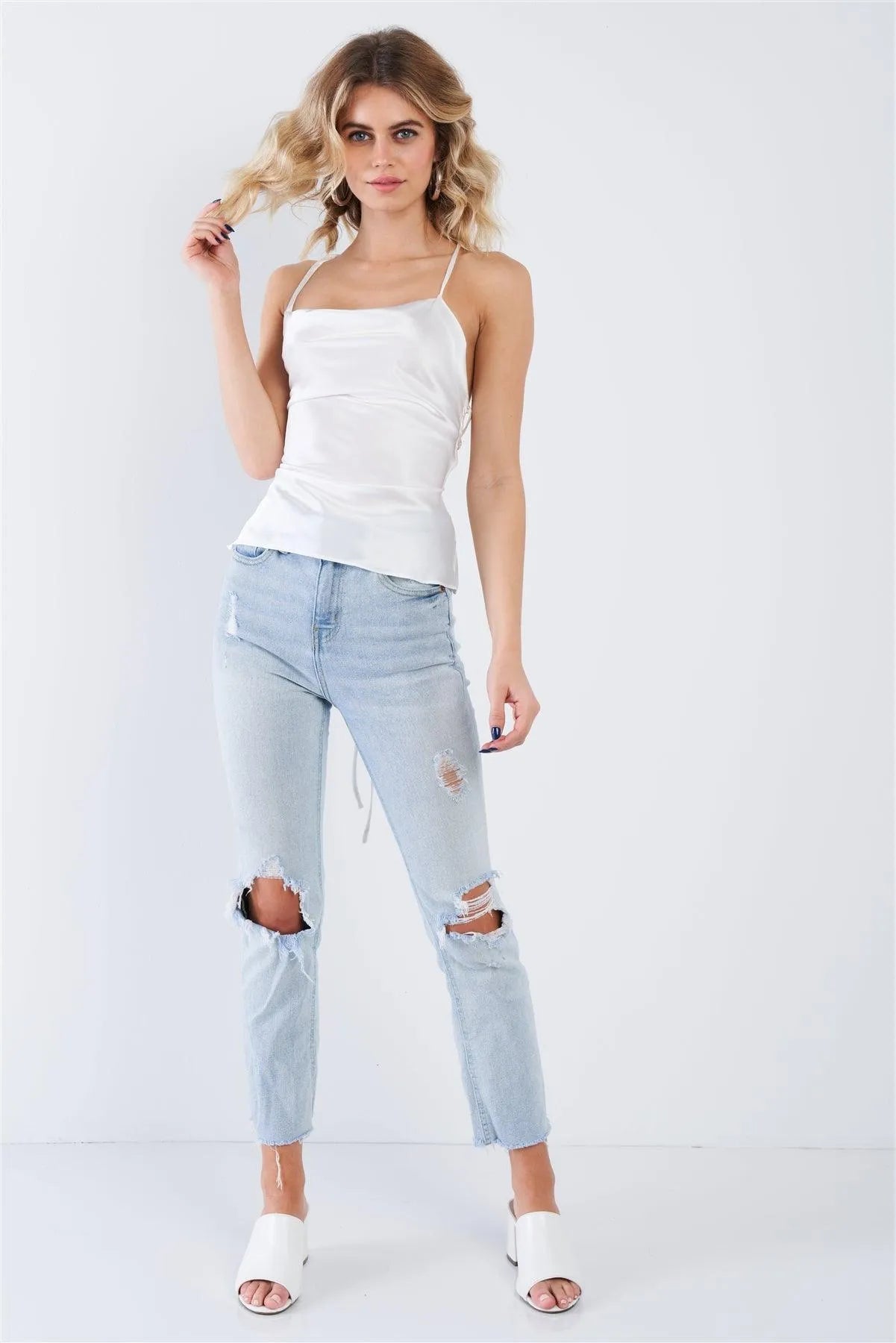 Off-White Silk Criss-Cross Open Back Retro Chic Top /3-2-1