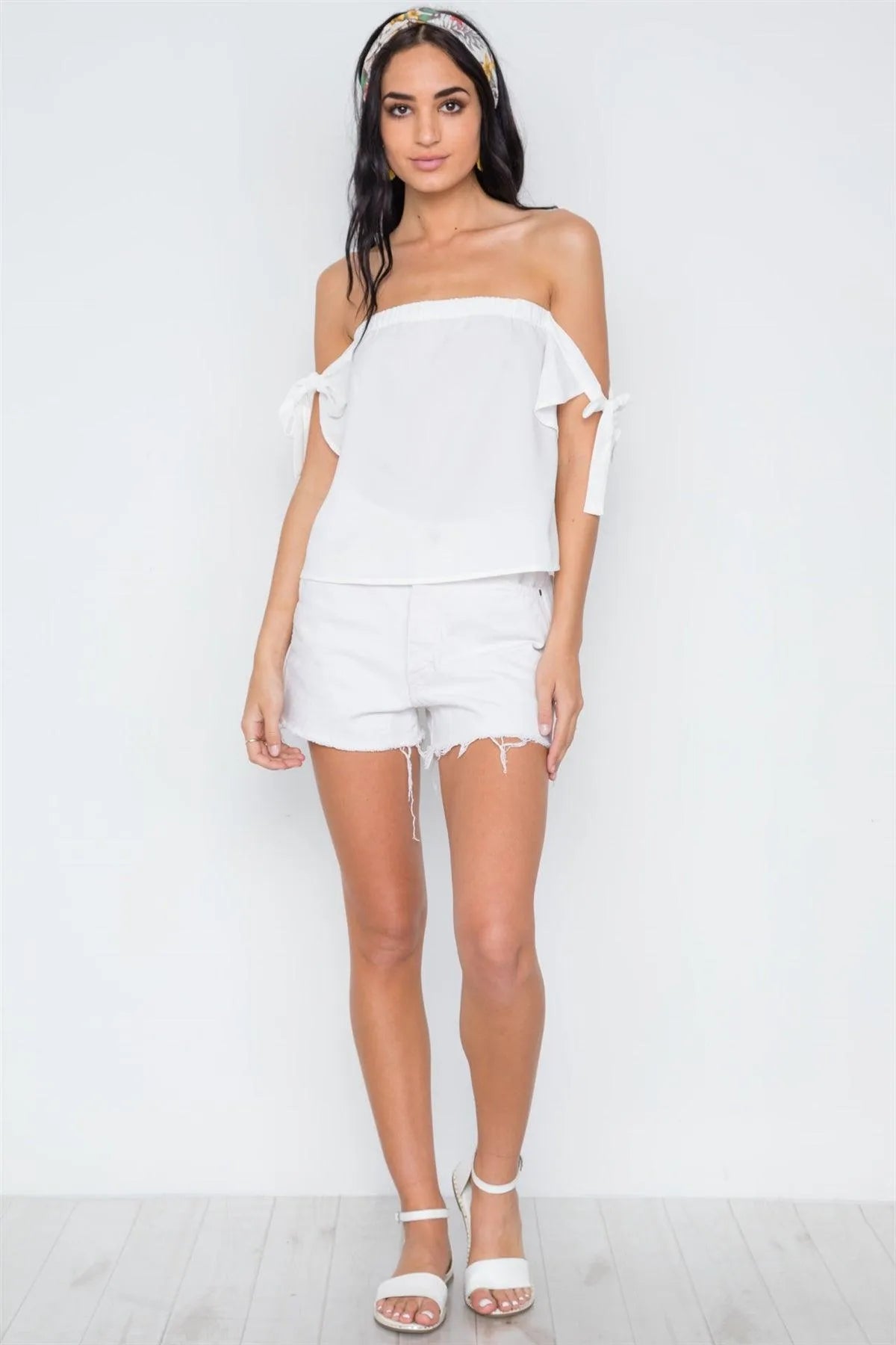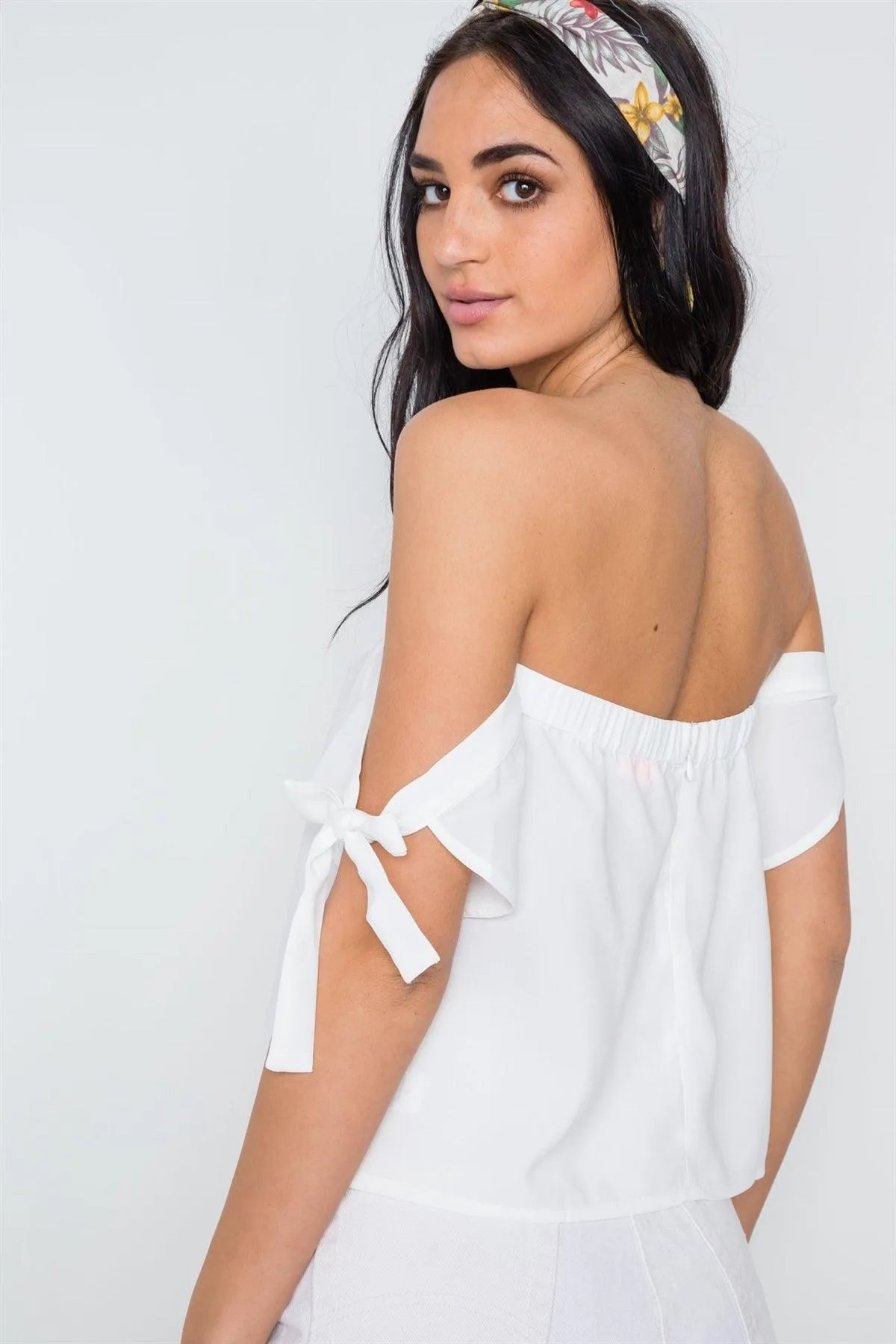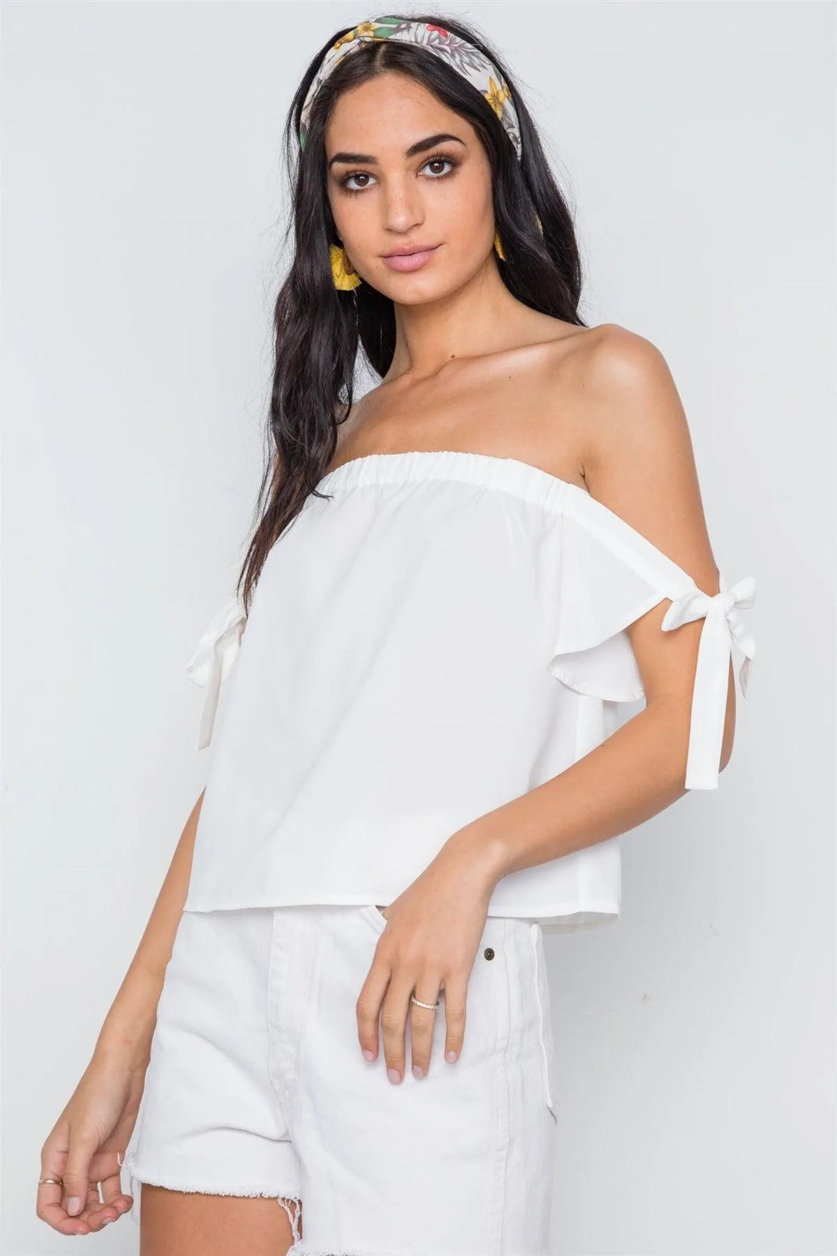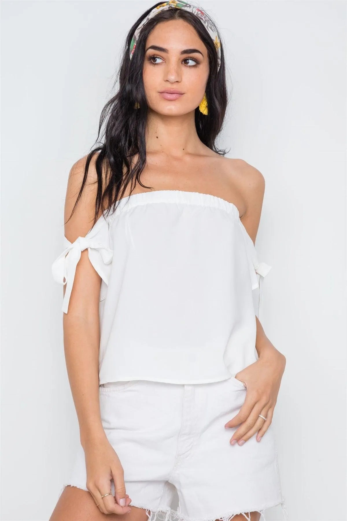 Off White Strapless Self Tie Sleeves Solid Top /3-2-1