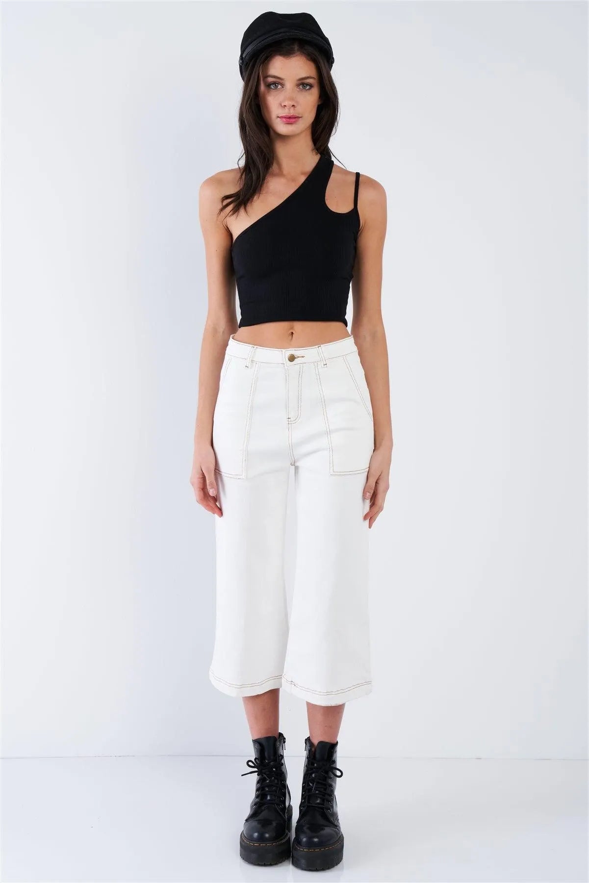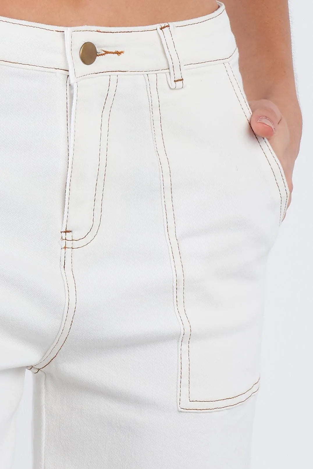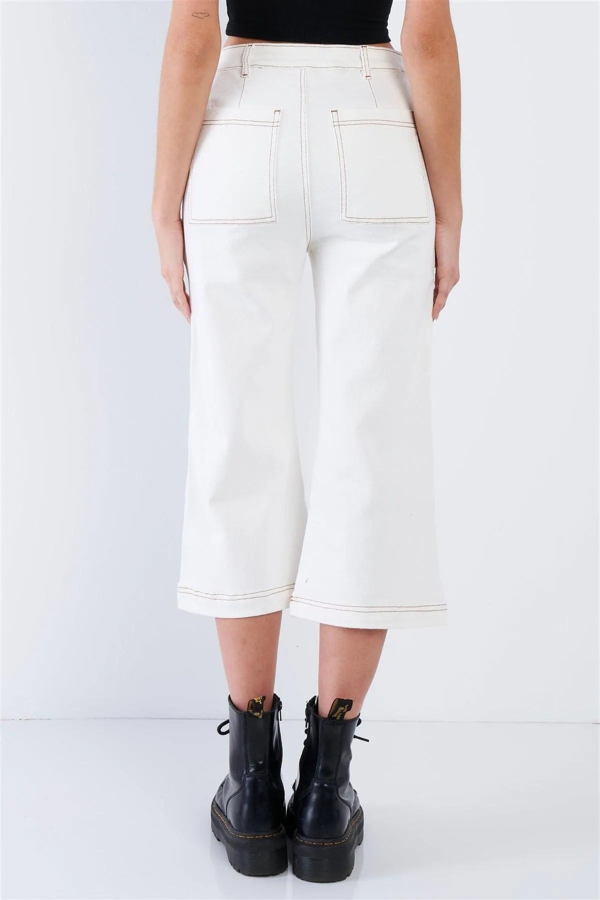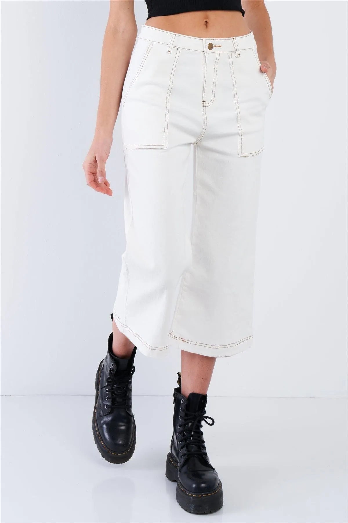 Pant Features: gaucho, midi length, solid, brown stitching, casual, front and back pockets, casual, denim, chic, vintage, retro, front fly zipper and button closure, stretchy. Model is 5'9 wearing a size Small ( Waist: 23.5", Bust: 32B, Hips: 36")Item Measurements: Length: 34" , Waist: 28"Item comes pre-packed with hang tagsTrue to sizeAlso available in Red Bean