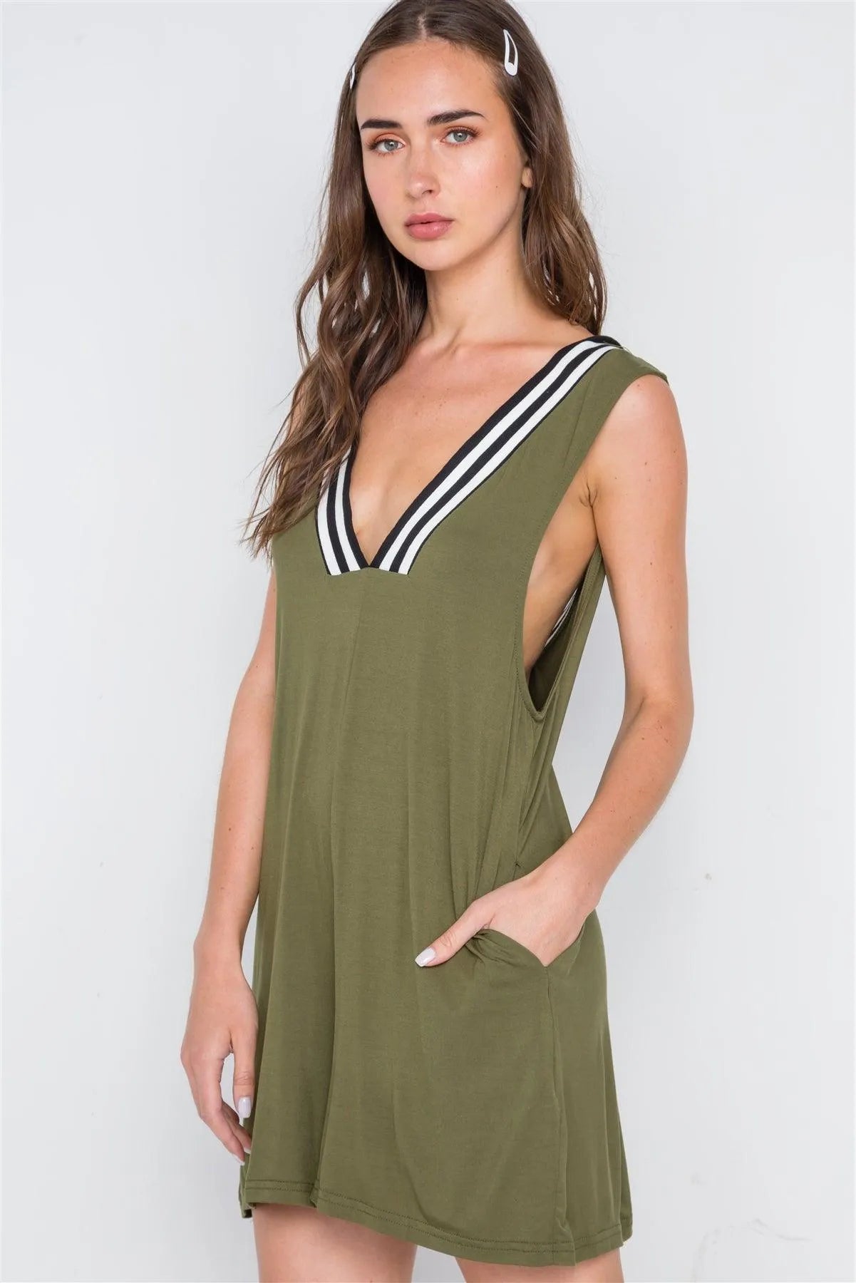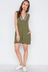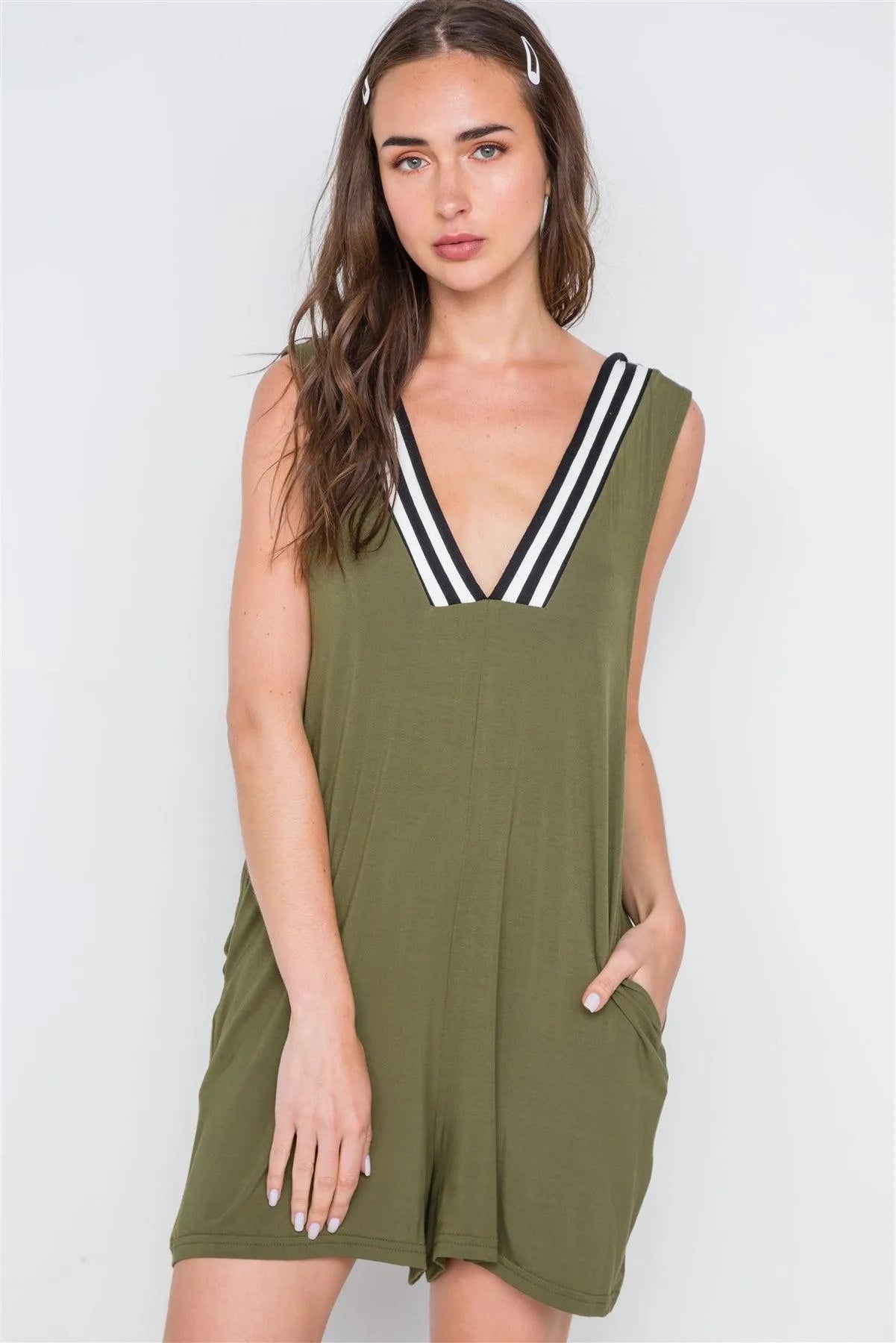 Olive Contrast V-Neck Loose Fit Romper /2-1-1