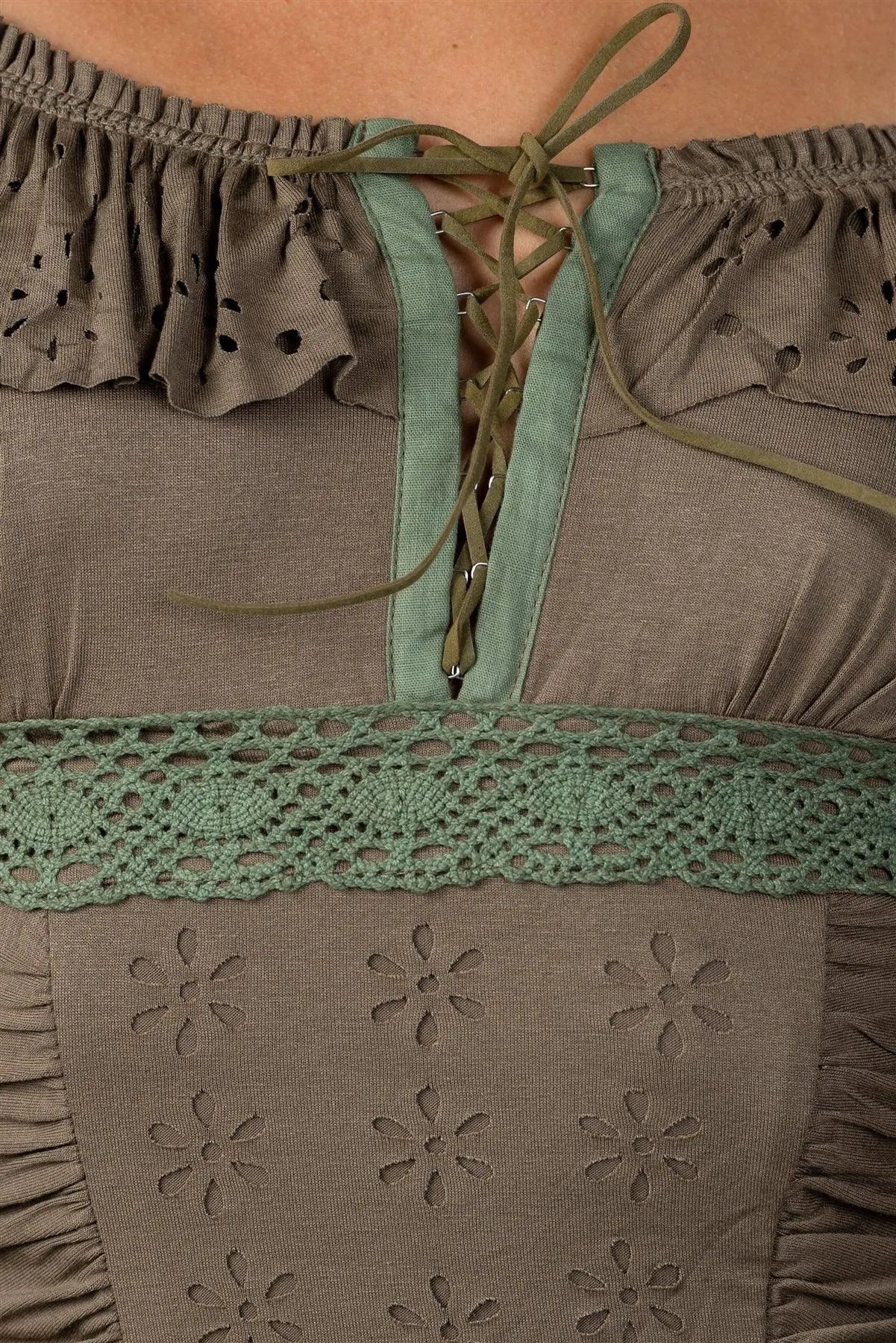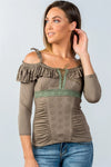 Olive Floral Eyelet Tie-Strap Cold Shoulder Top /2-2-2