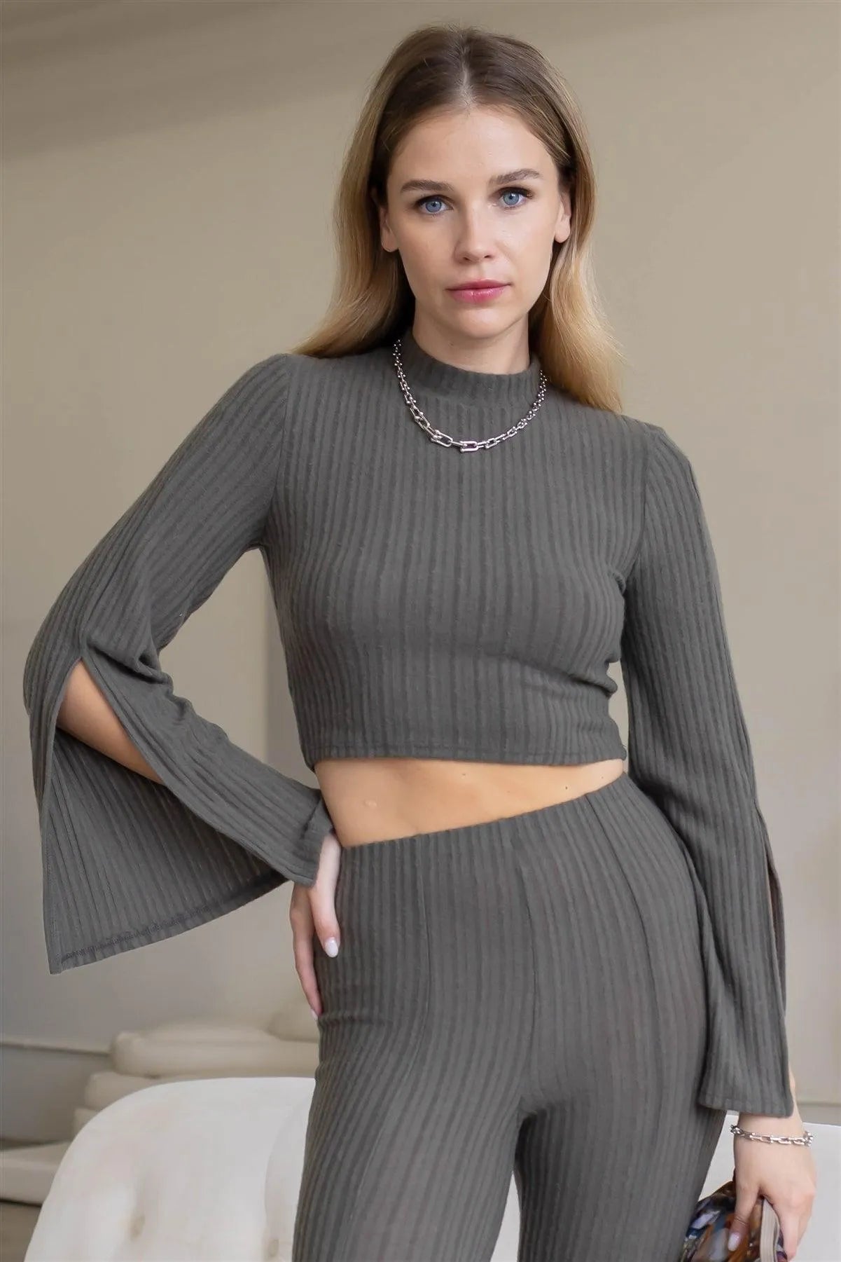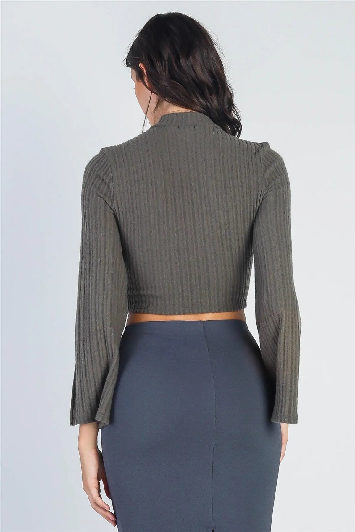 Olive Ribbed Long Sleeve Crop Top /3-2-1