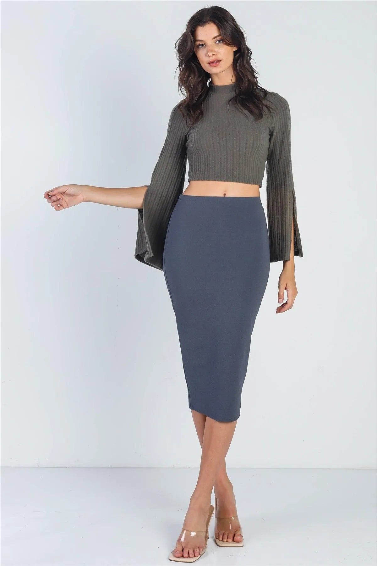 🖤 Item Features: Olive, solid color, ribbed material, crew neckline, bell long sleeves, cropped length, semi-stretchy, not see through, unlined, casual, stylish, trendy, chic, soft to touch, warm, comfy, street style, everyday look