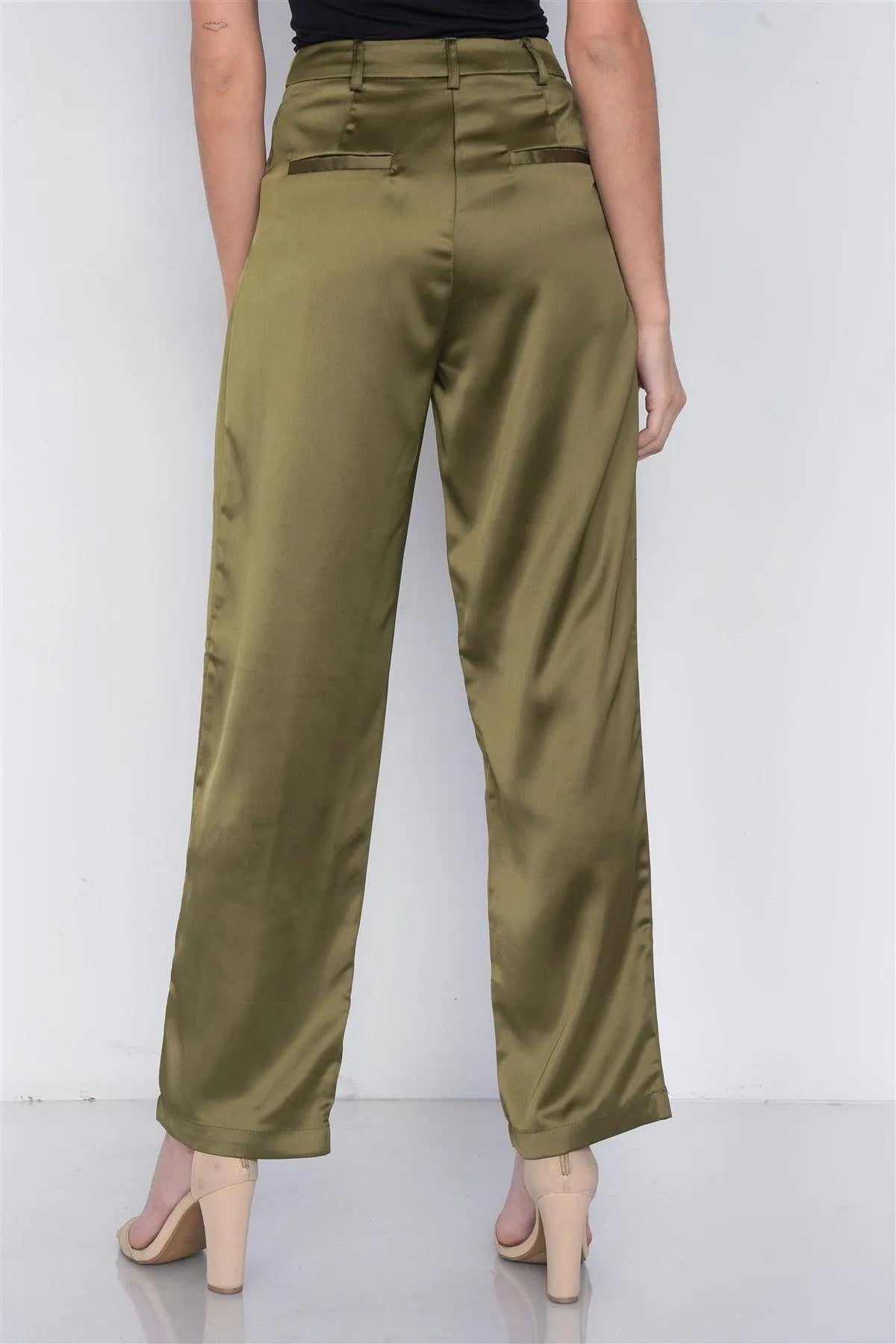 Olive Silk Boyfriend Blazer & Chic High-Waist Pleated Ankle Pant Set