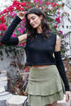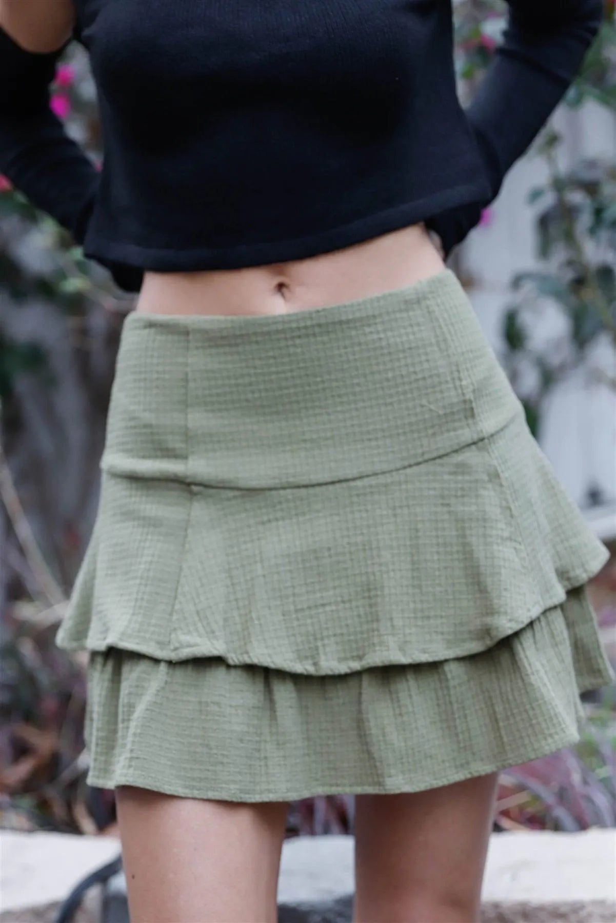 Olive Textured Ruffle Mini Skirt /2-2-1