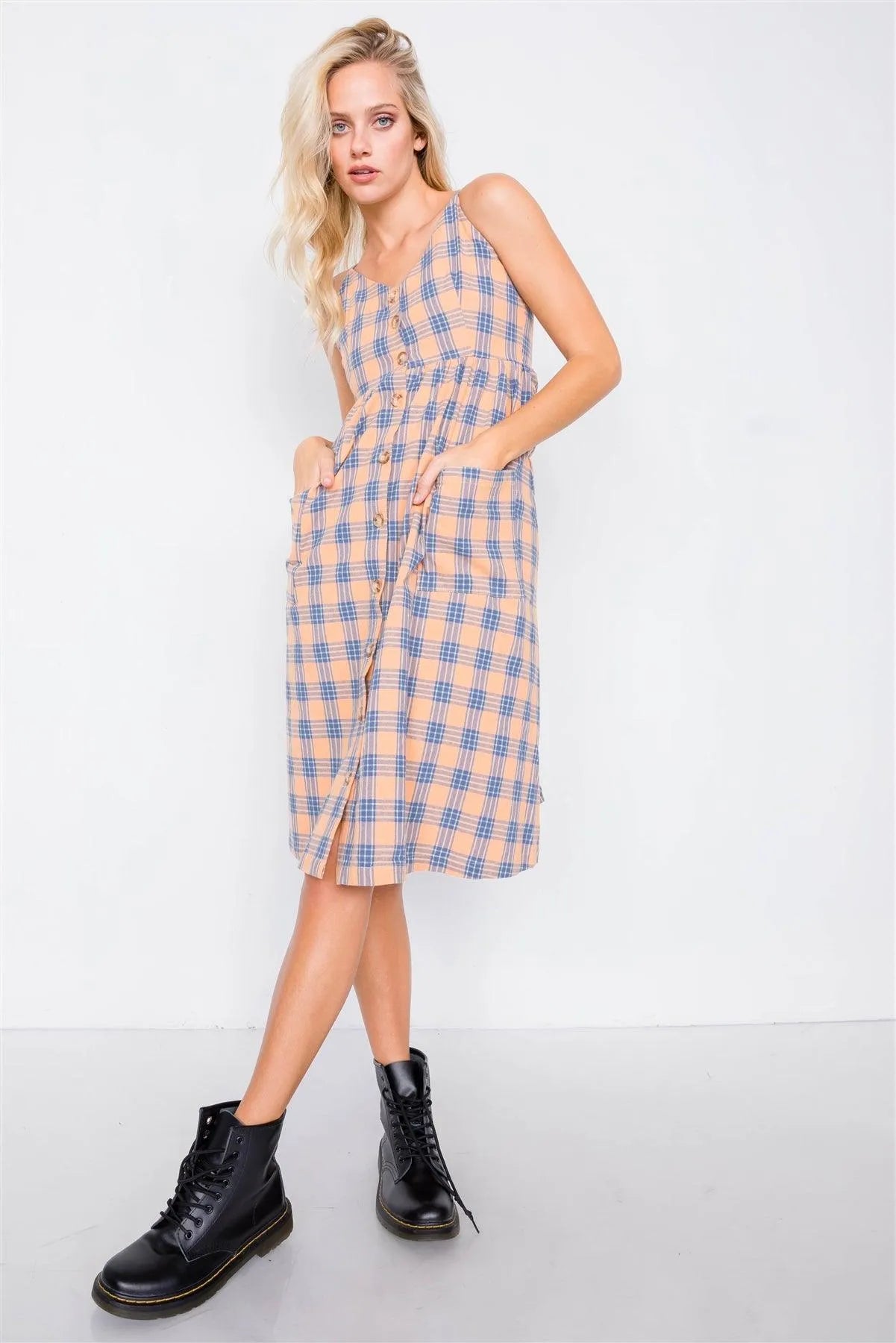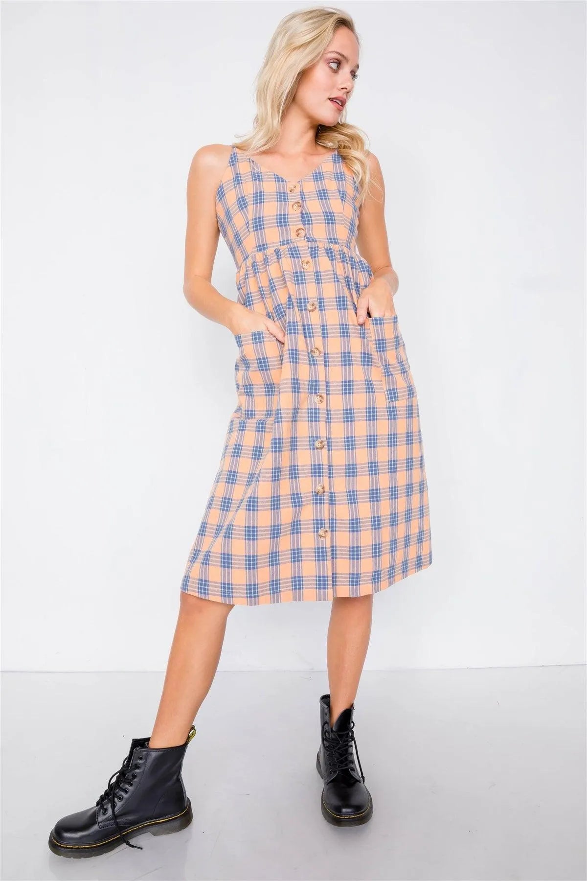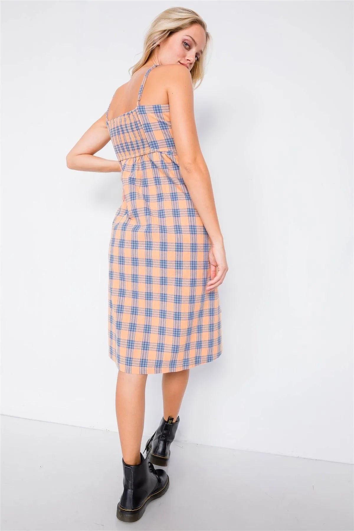 Orange Plaid V-Neck Midi Dress /2-2-2