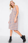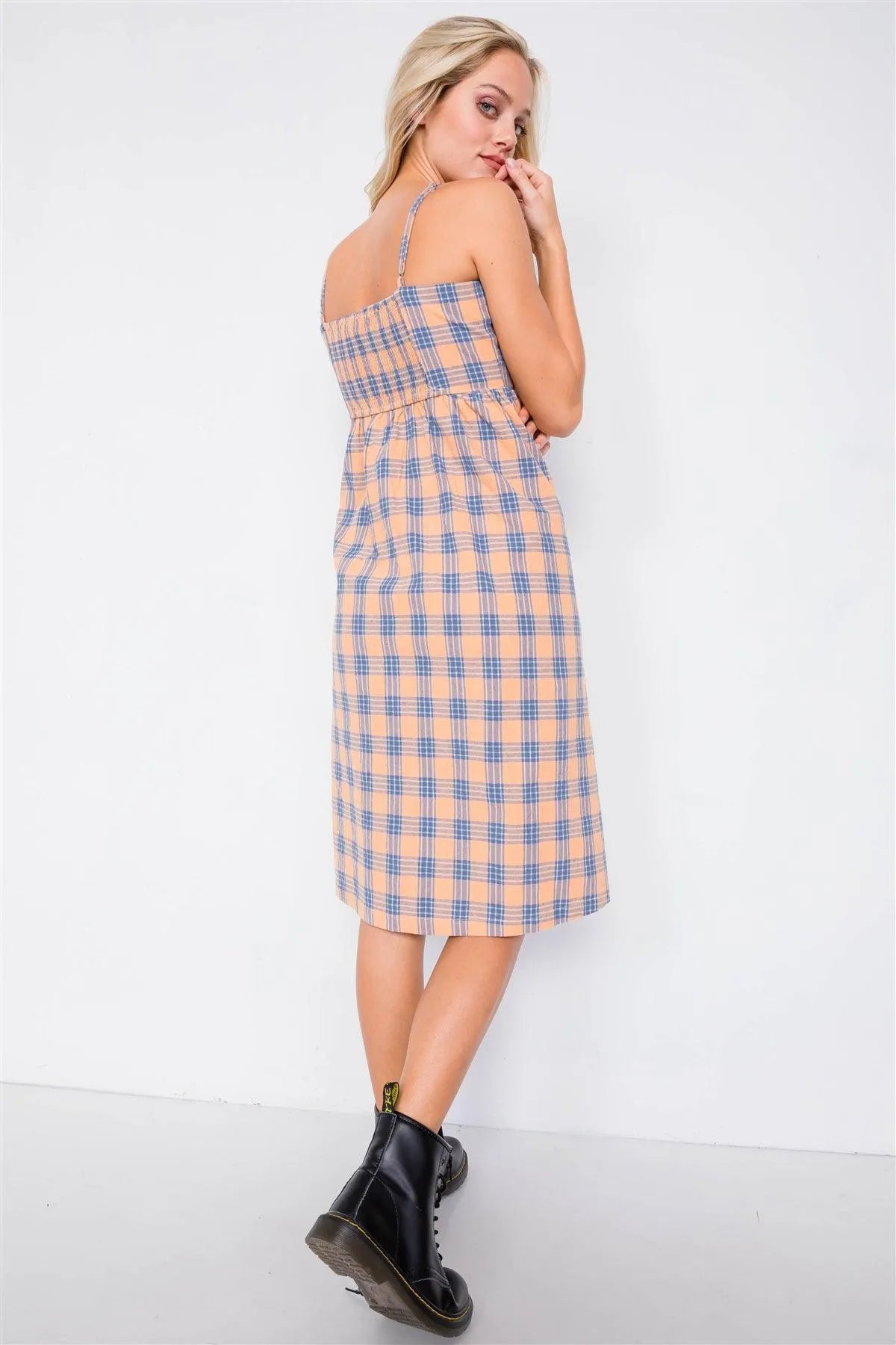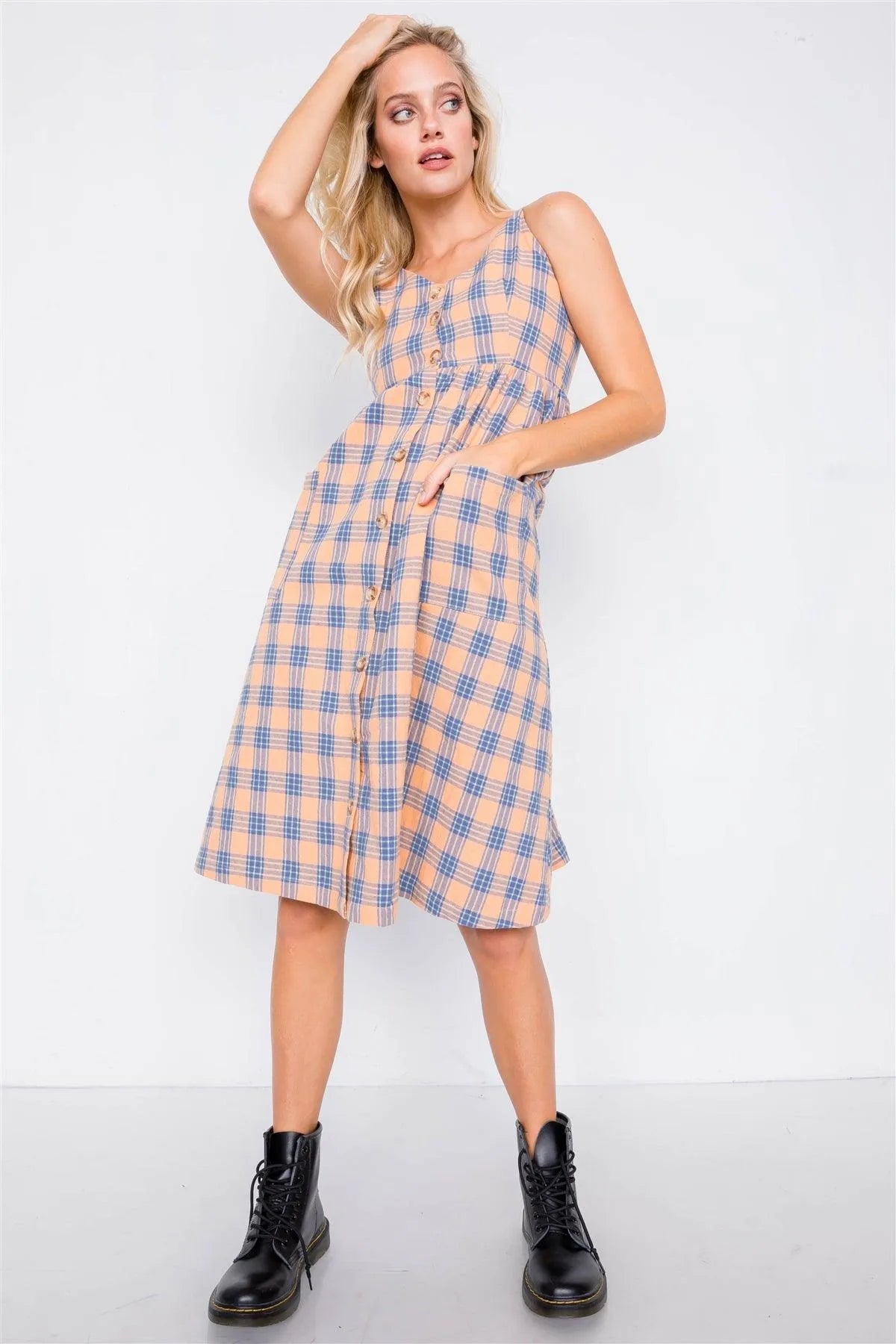 Orange Plaid V-Neck Midi Dress /2-3-2
