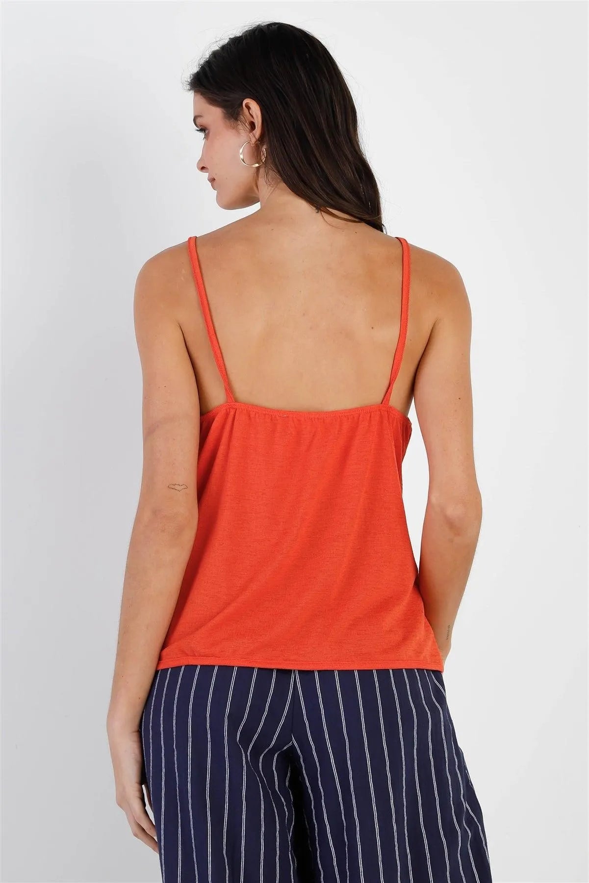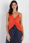 Orange Textured Front Twisted Detail V-Neck Strappy Top /1-2-2