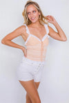 Orange & White Plaid V-Neck Eyelet Ruffle Trim Chic Top /4-2-1