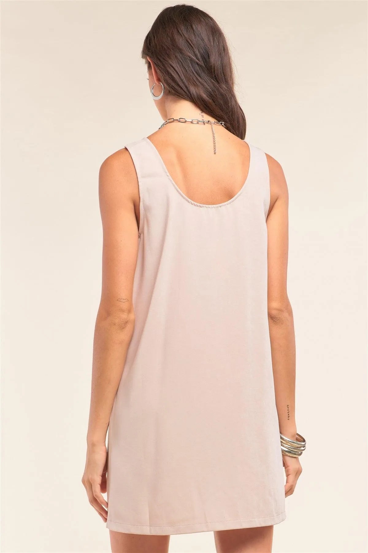 Pastel Nude Sleeveless Scoop Neck D-Ring Strap Detail Front Pockets Tube Mini Dress /1-2-2