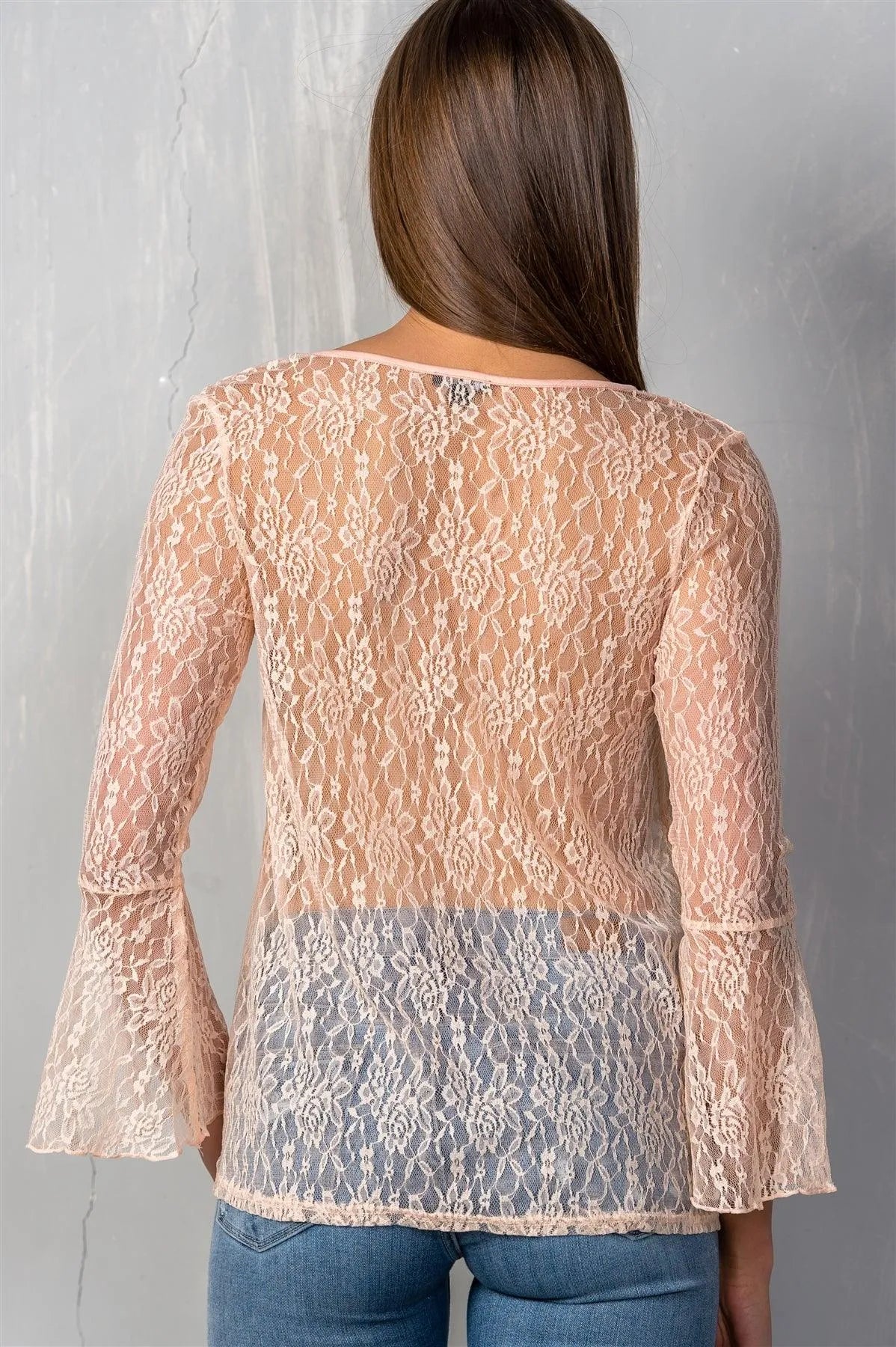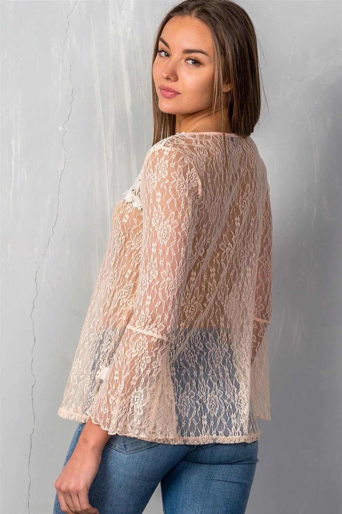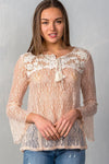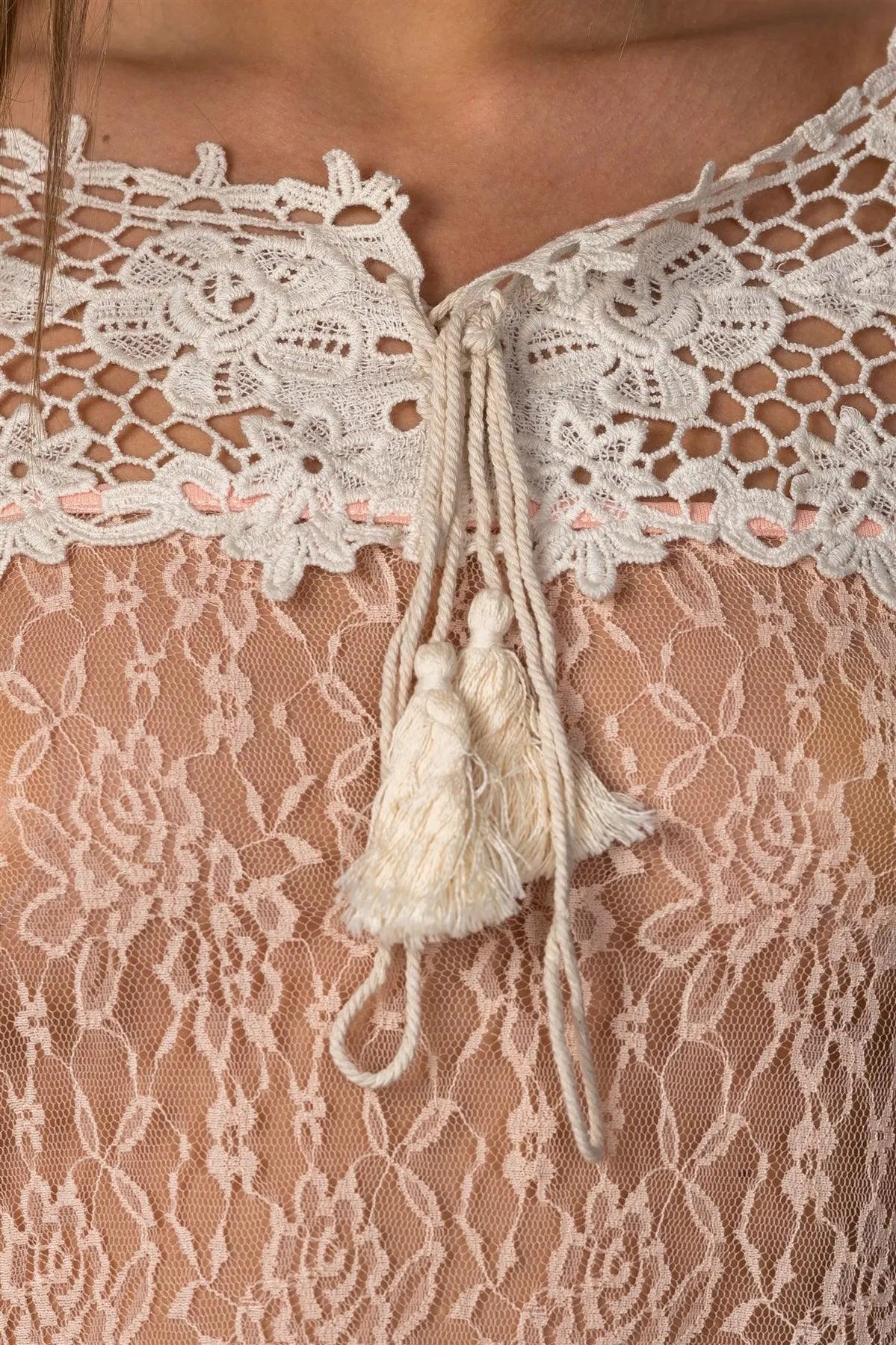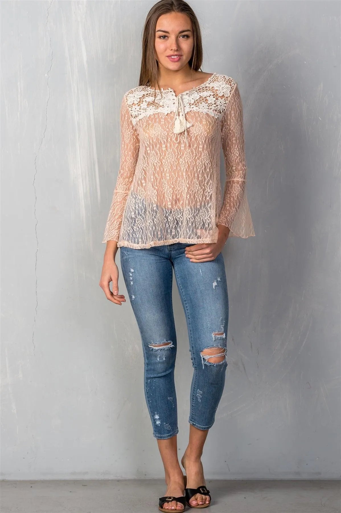 Peach Allover Lace Self-Tie Neck W/ Tassel Top /1-2-2-1