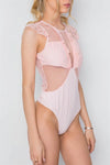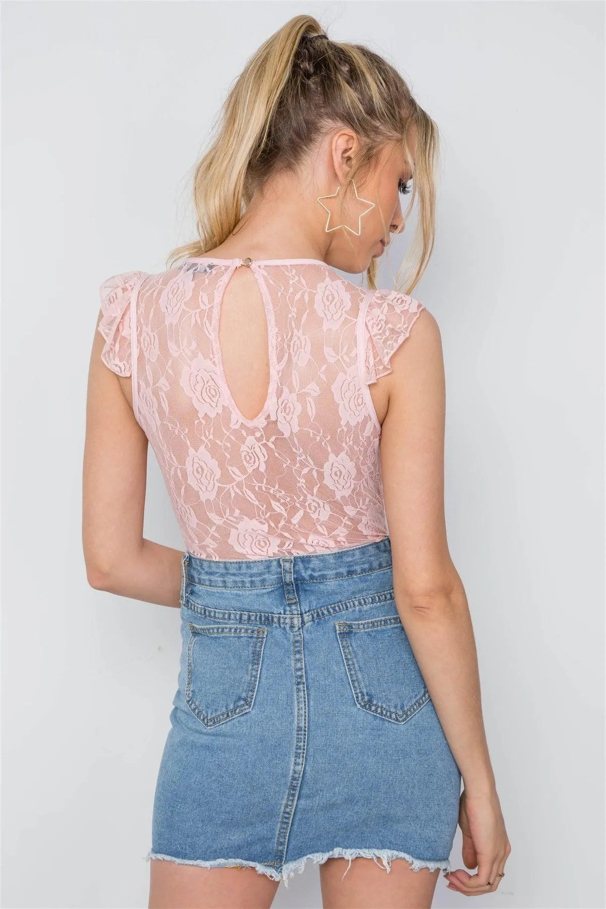 Peach Floral Lace Sheer Ruched Bodysuit /2-2-2