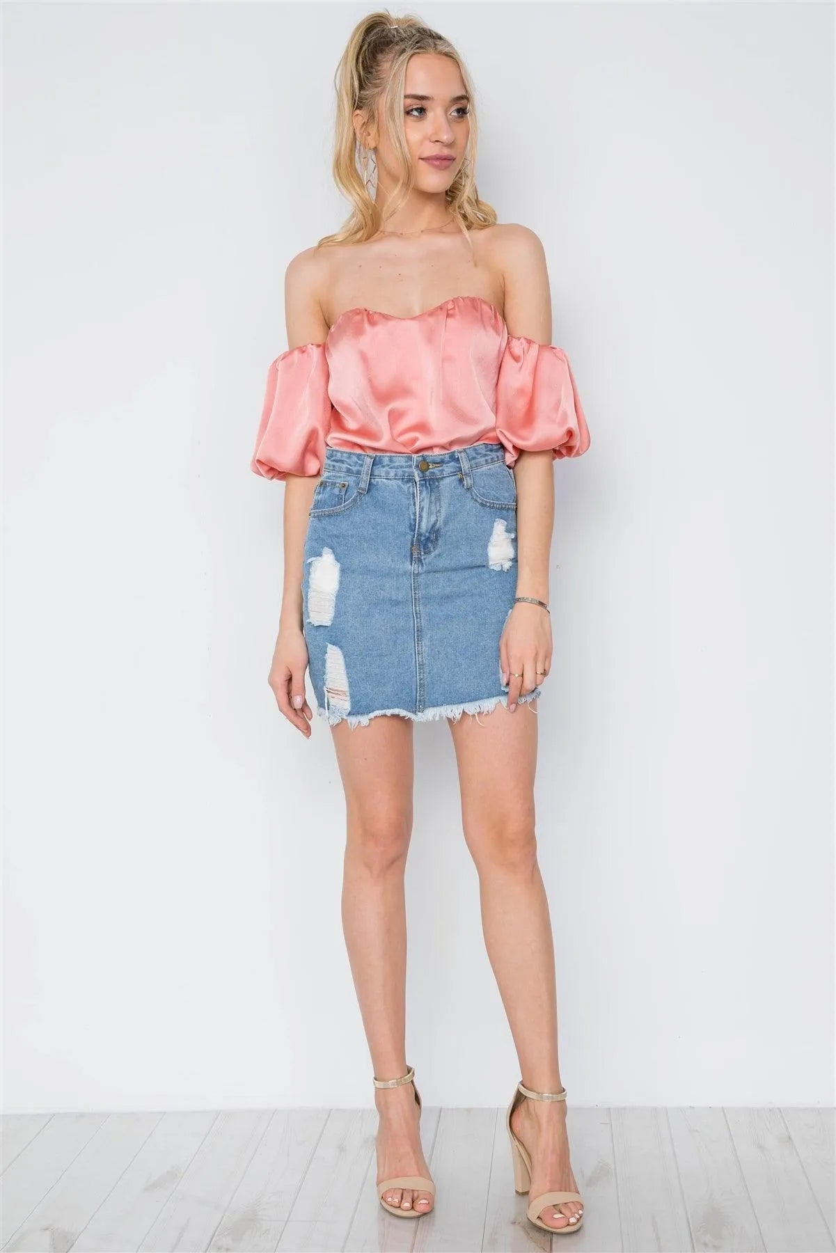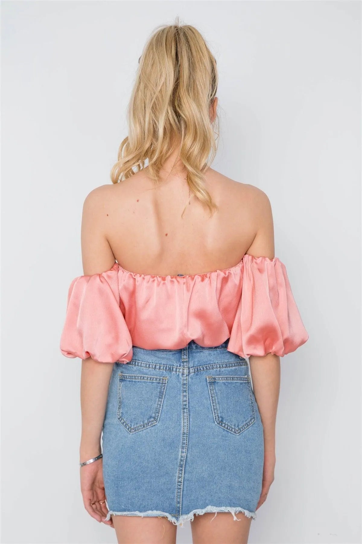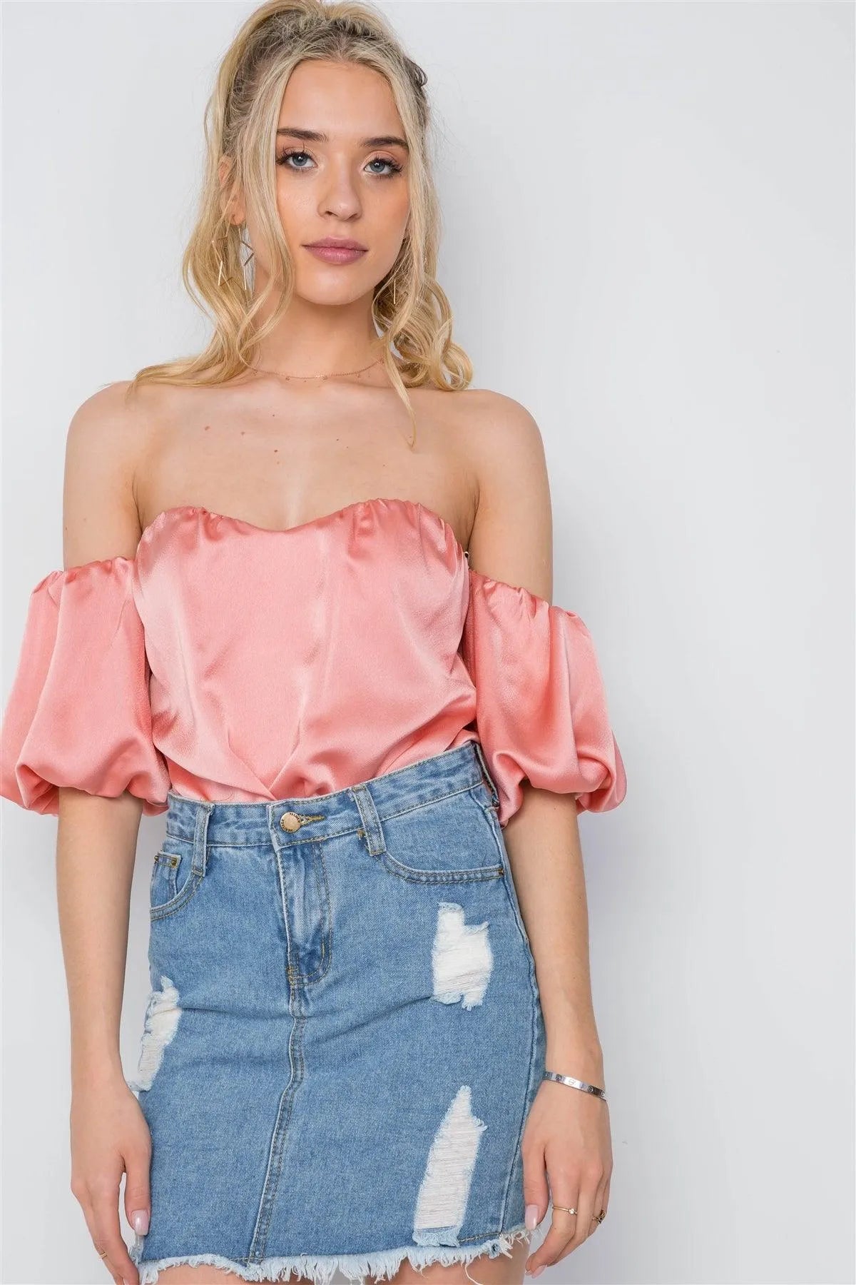 Peach Off-The-Shoulder Sweetheart Bodysuit
