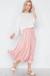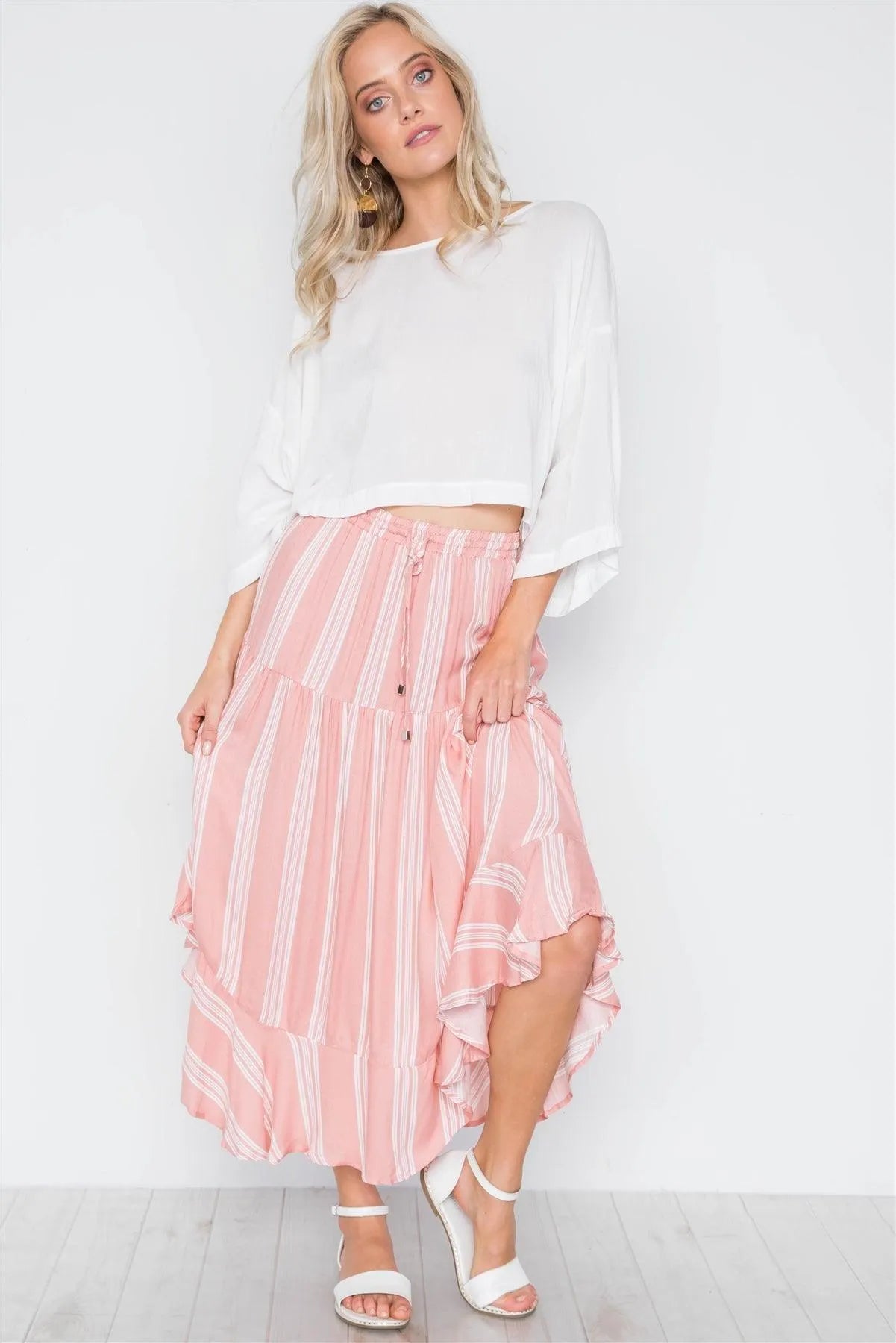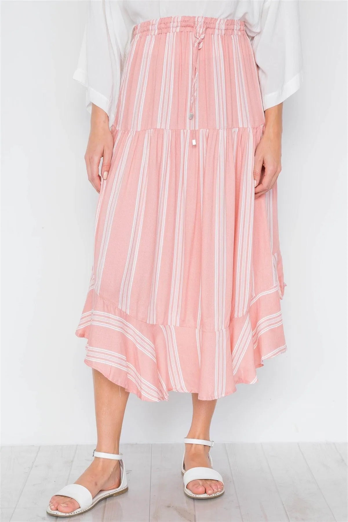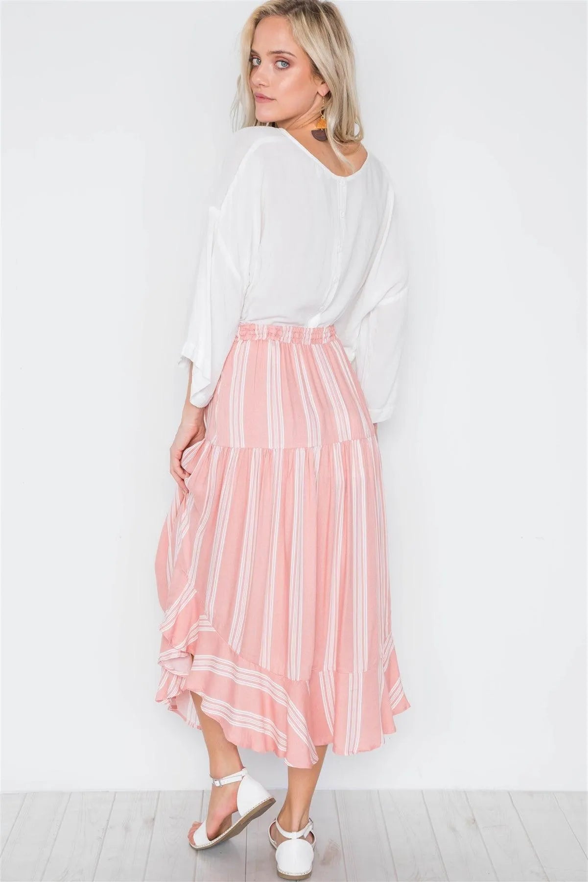 Peach Stripe High-Waist Midi Skirt /1-2-2-1