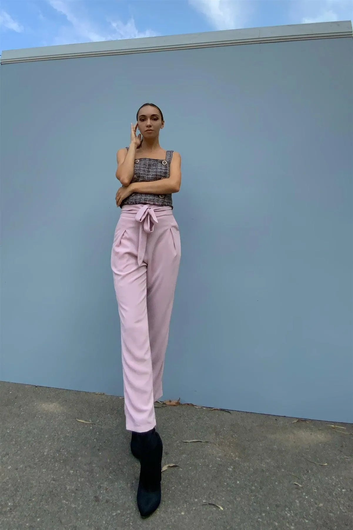 Pants Features: solid, dress, business wear, office attire, waist side button closure, mock wrap self tie sash, waist pleat, unlined, some stretch.Model is 5'9 wearing a size Small ( Waist: 23.5", Bust: 32B, Hips: 36")Item measurements: Length: 38.5'', Waist: 28"Item comes pre-packed True to sizeAlso available in Sage Green