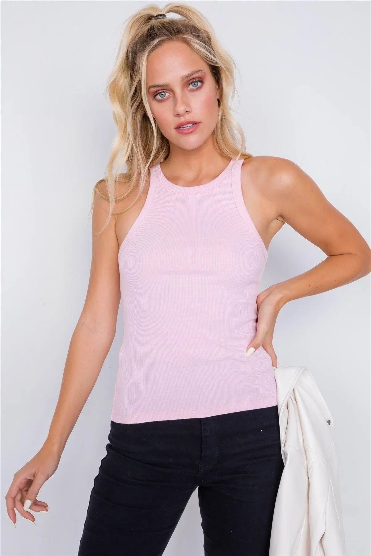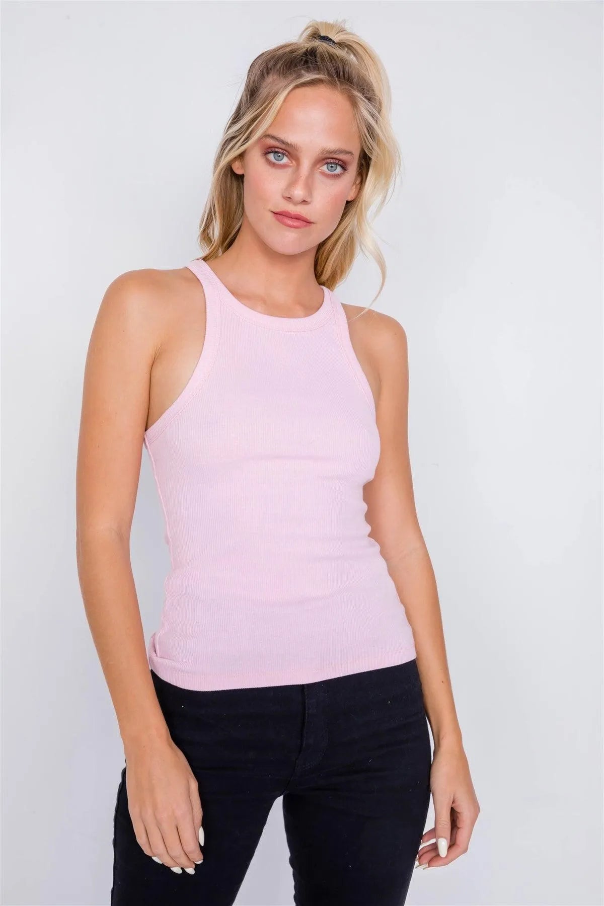 Pink Basic Sporty Chic Ribbed Tank /3-2-1
