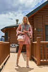 Pink Long Bell Sleeve Round Neck Flounce Mini Dress /2-2-1