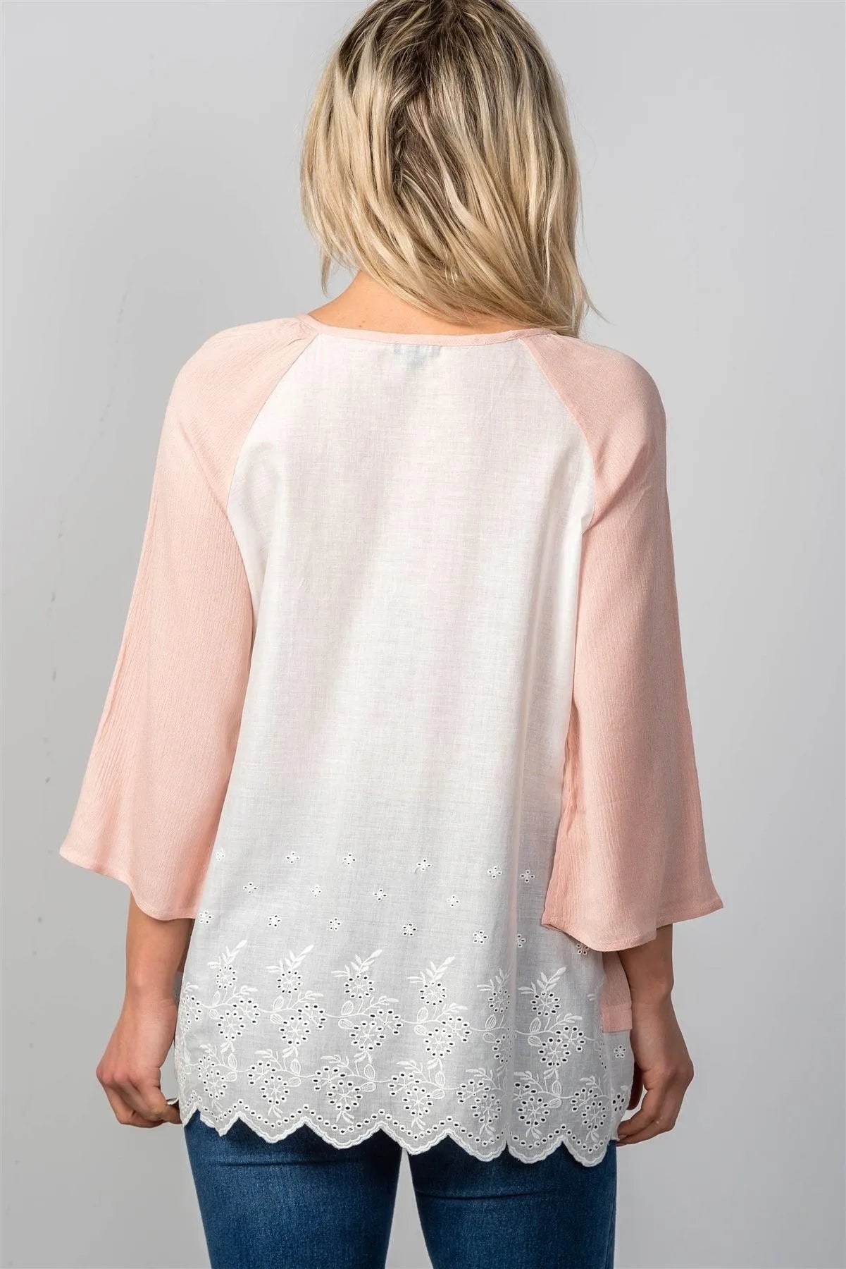 Pink Eyelet Contrast Top /2-2-2