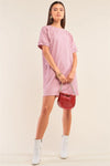Lemonade Pink Loose Fit Ribbed Crew Neck Eyelet Embroidery Detail Raw Hem T-Shirt Mini Dress /2-3-1