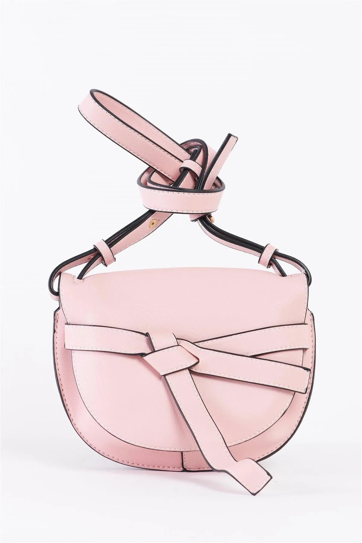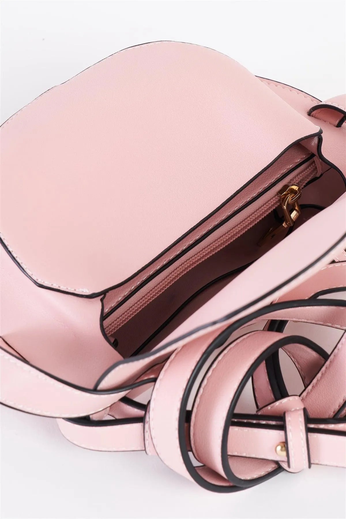 Pink Faux Leather Front Bow Tie Crossbody Bag /3 Bags