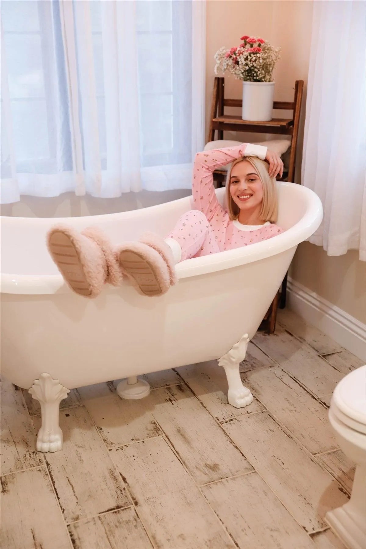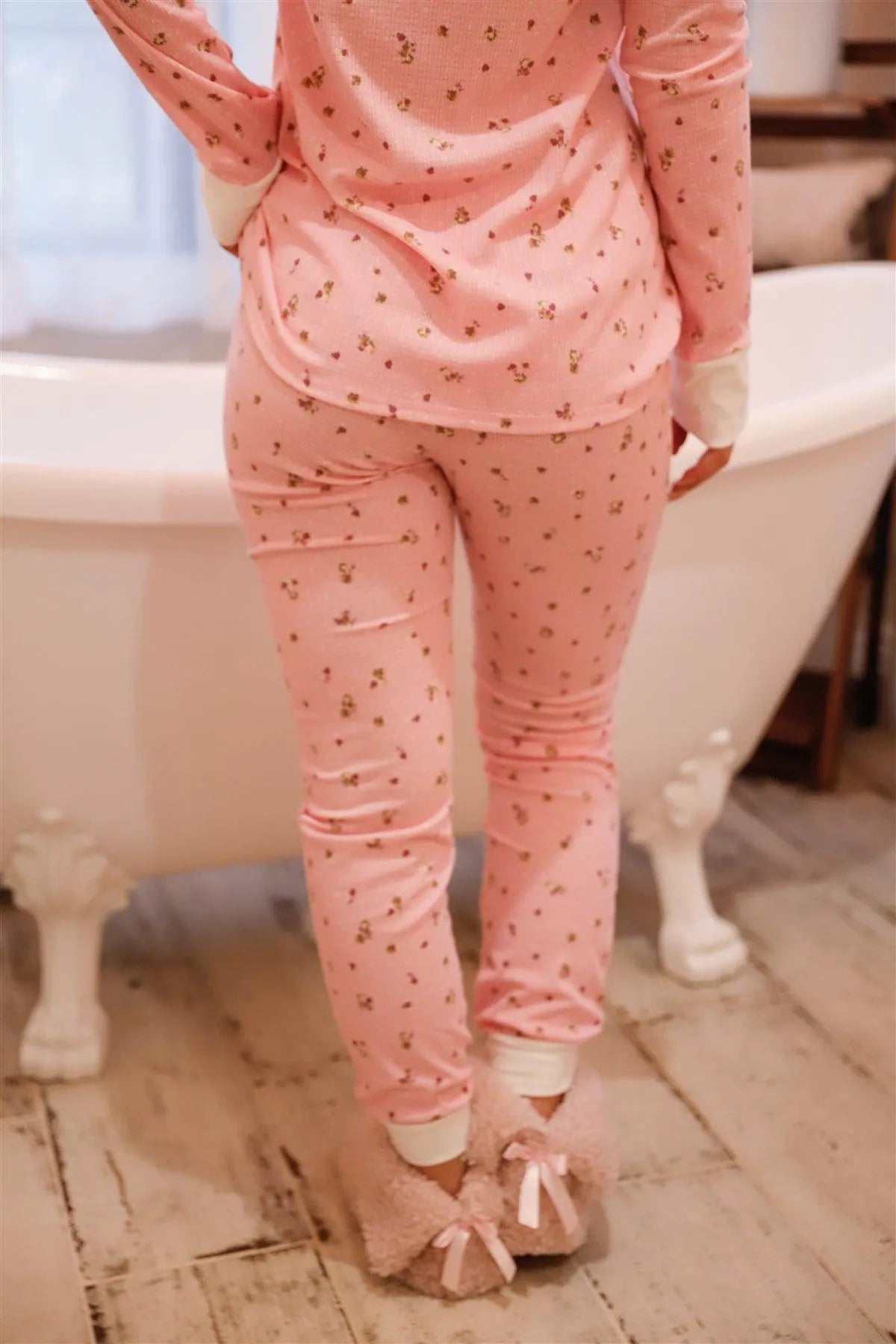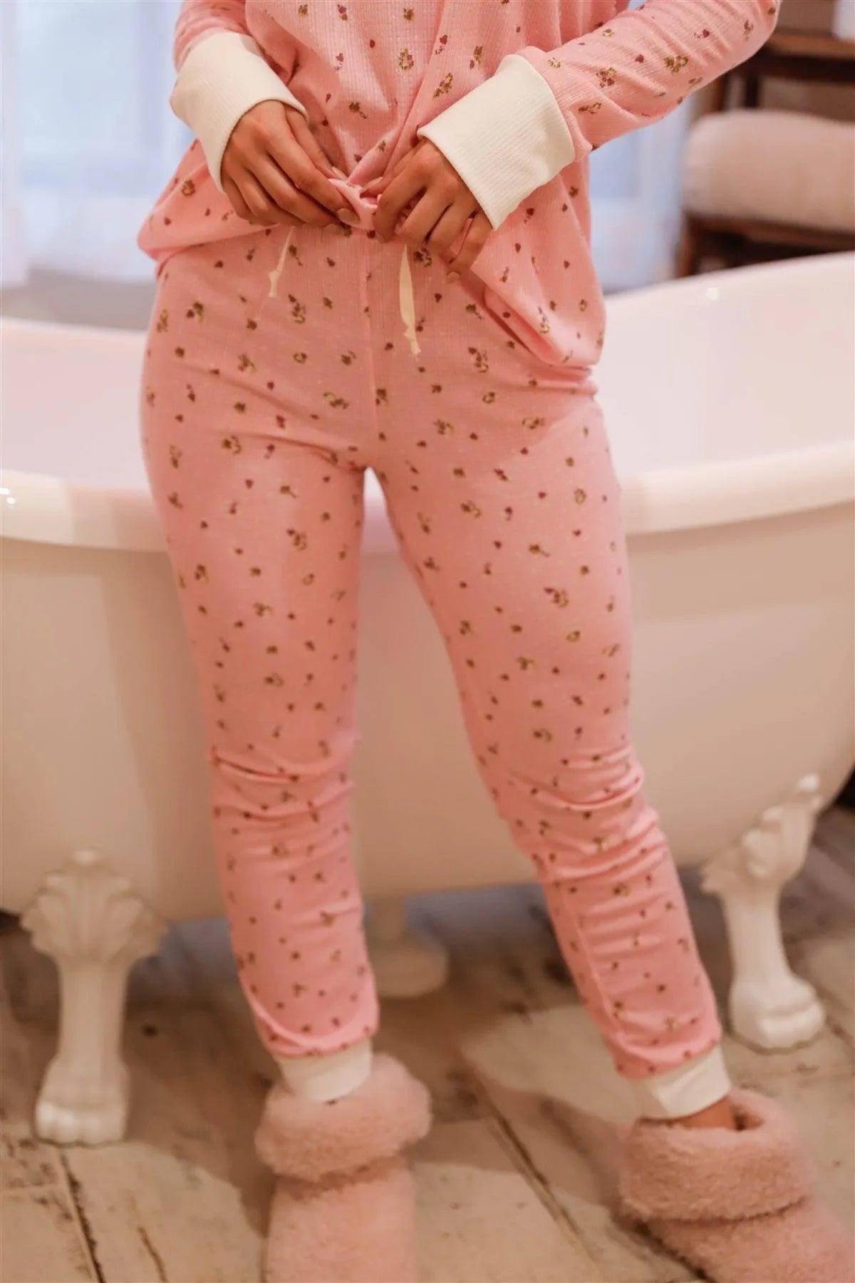 🖤 Item features: Pink, floral print, crewneck, sleeve, hem detail, flannel material, loose fit t-shirt, crew neckline, long sleeves, slim fit sweatpants, elasticized waistline with drawstring, cuffed hem, no pockets, stretchy, unlined, comfy, loungewear, stylish, trendy, must have