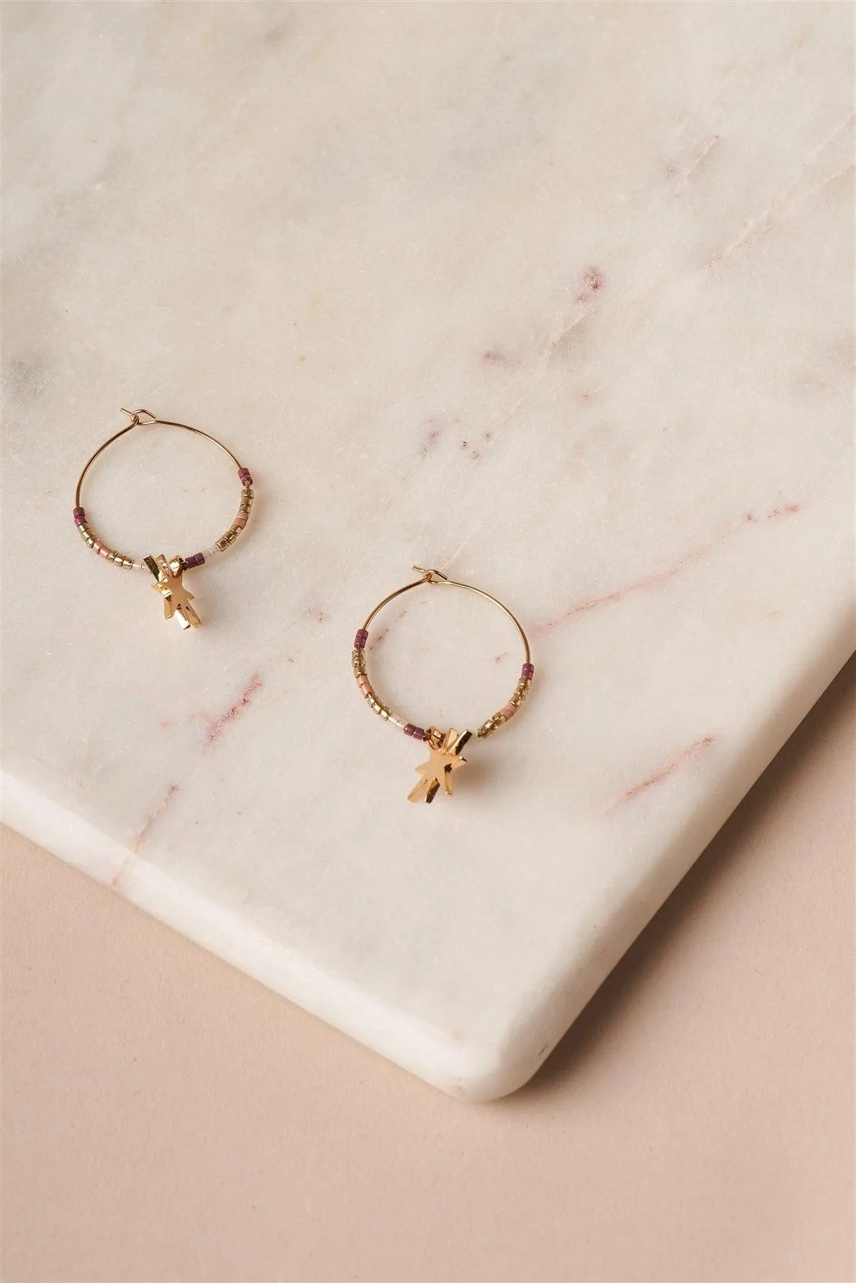 Pink Gold North Star Hoop Drop Earrings /3 Pairs