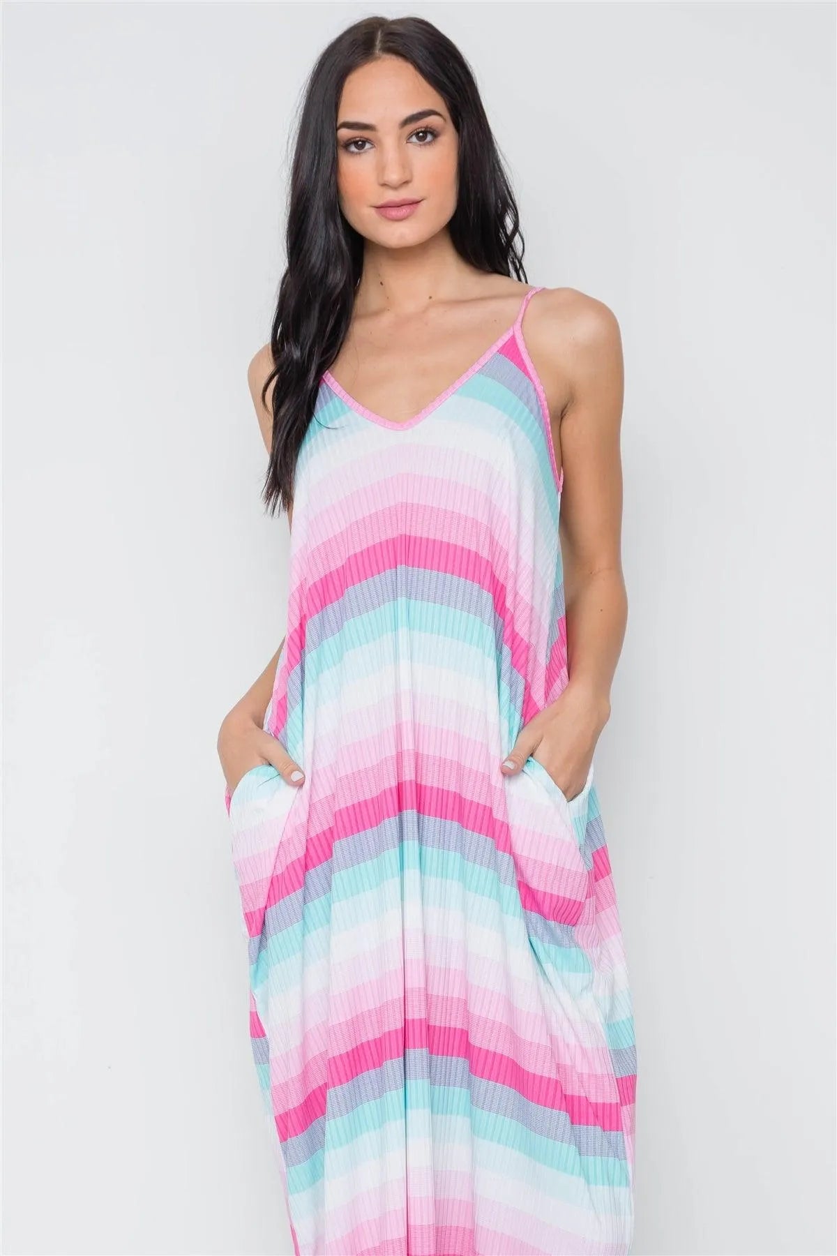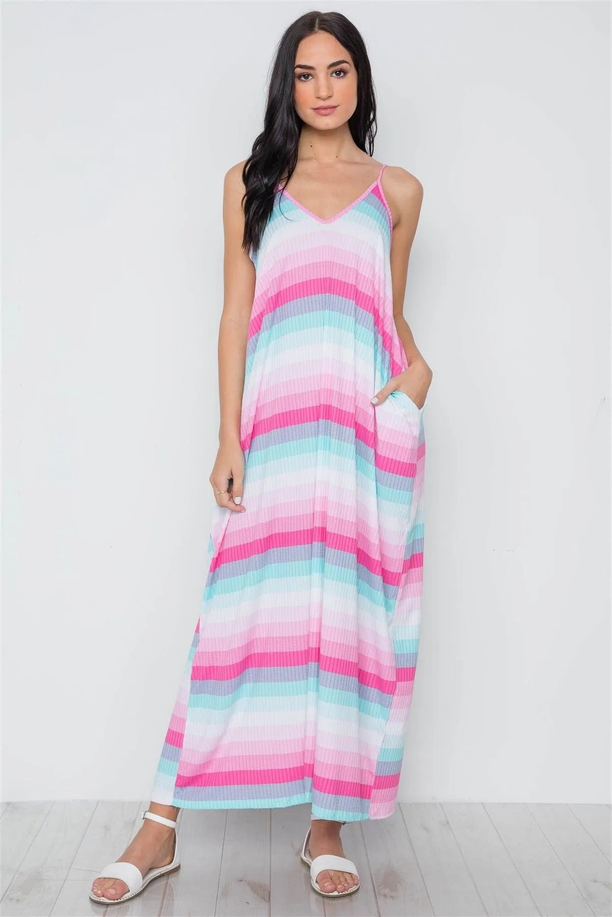 Pink Multi Stripe Cami Maxi Dress /2-2-2
