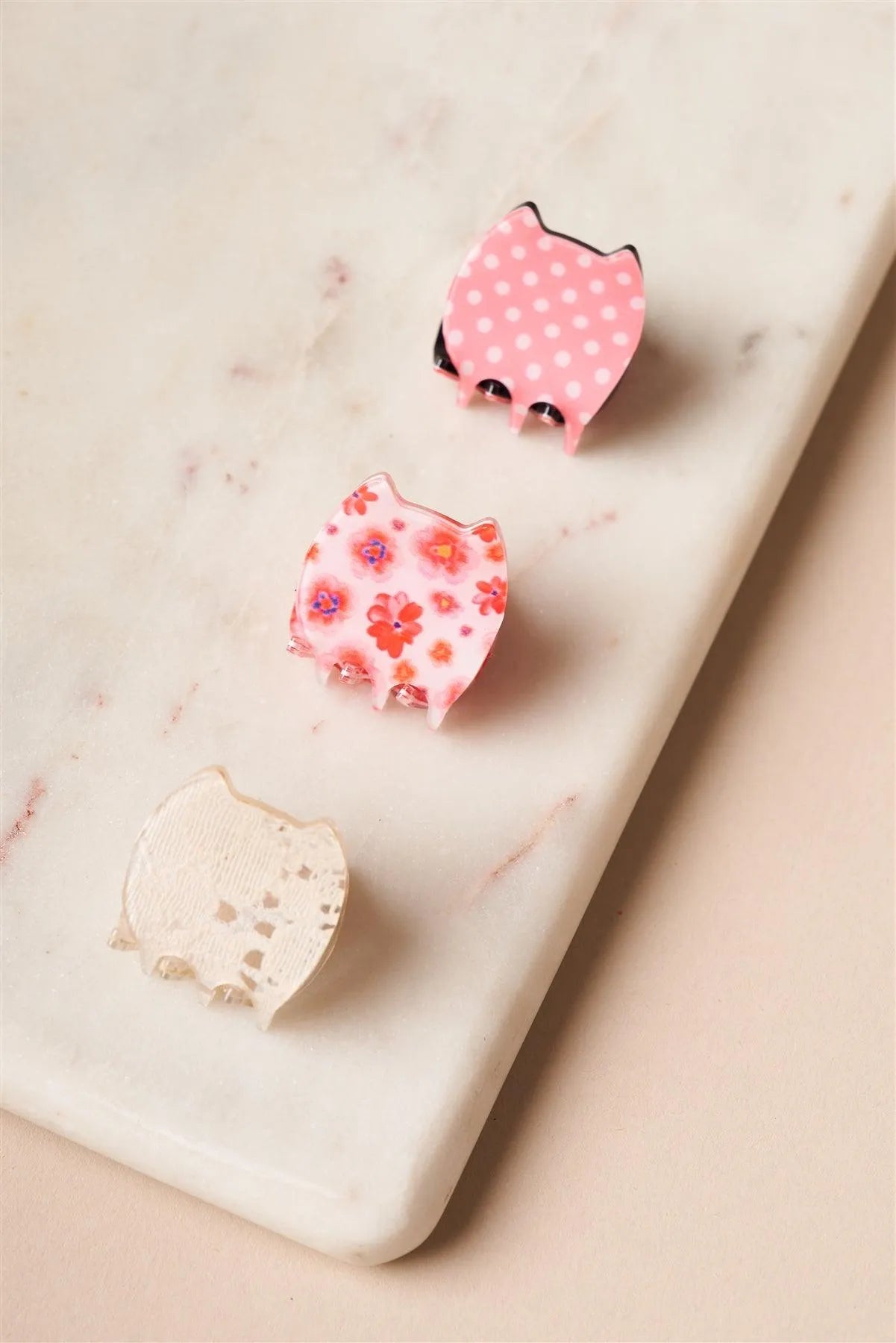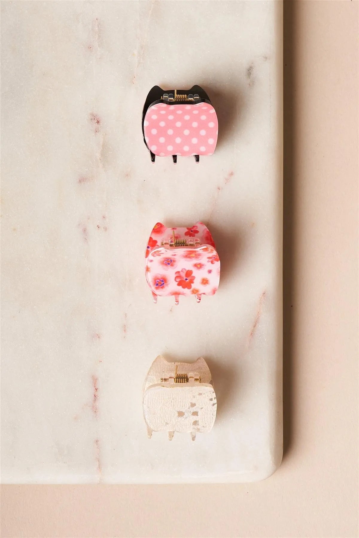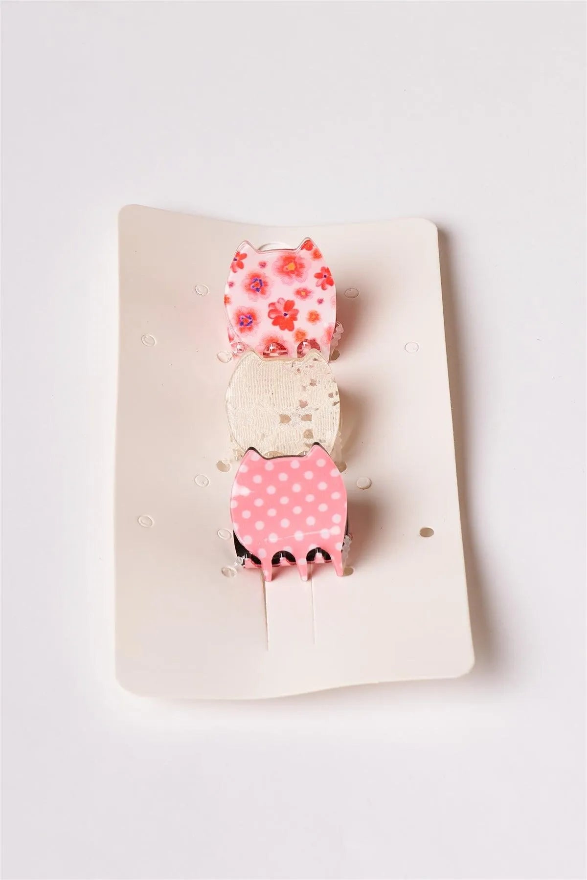 3pcs Pink Printed Mini Butterfly Hair Clips