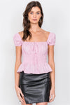 Pink Puff Cap Sleeve Eyelet Scallop Trim Peplum Top /3-2-1