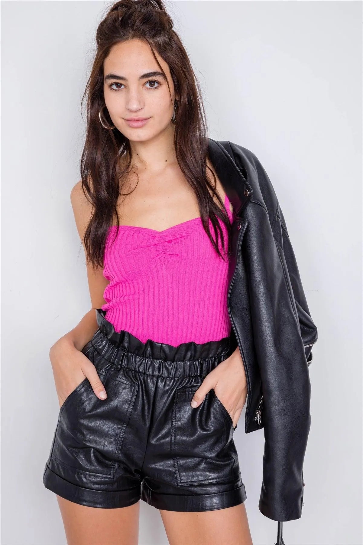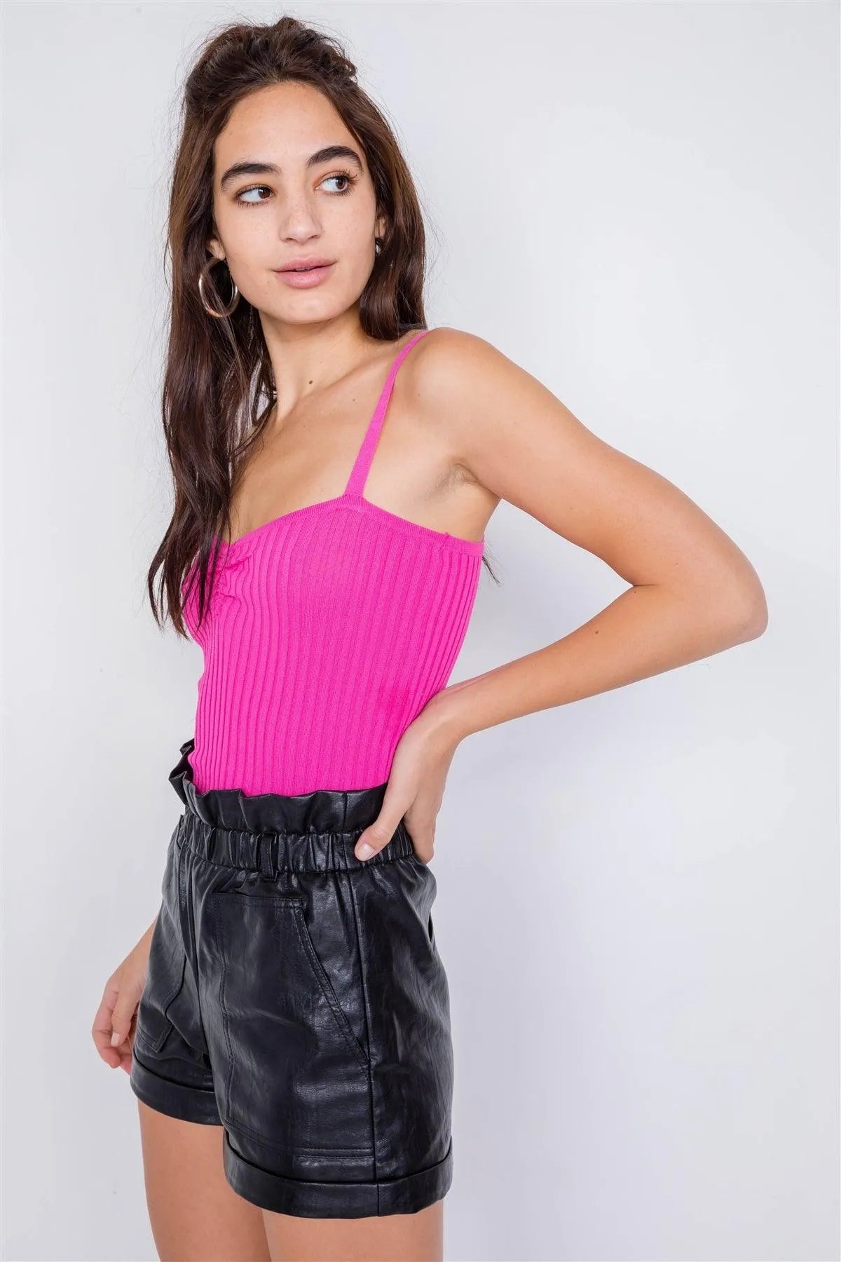 Pink Ribbed V-Neck Basic Chic Tank Top /4-2-1